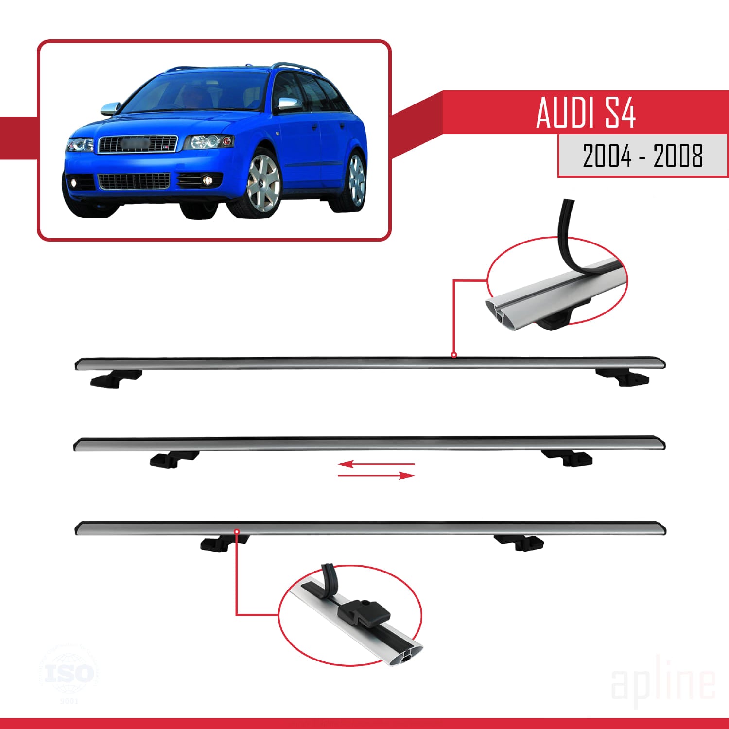 Compatible avec Audi S4 2004-2008 BASIC Model Barres de Toit Railing Porte-Bagages de Voiture Gris Aluminium 3 Barres