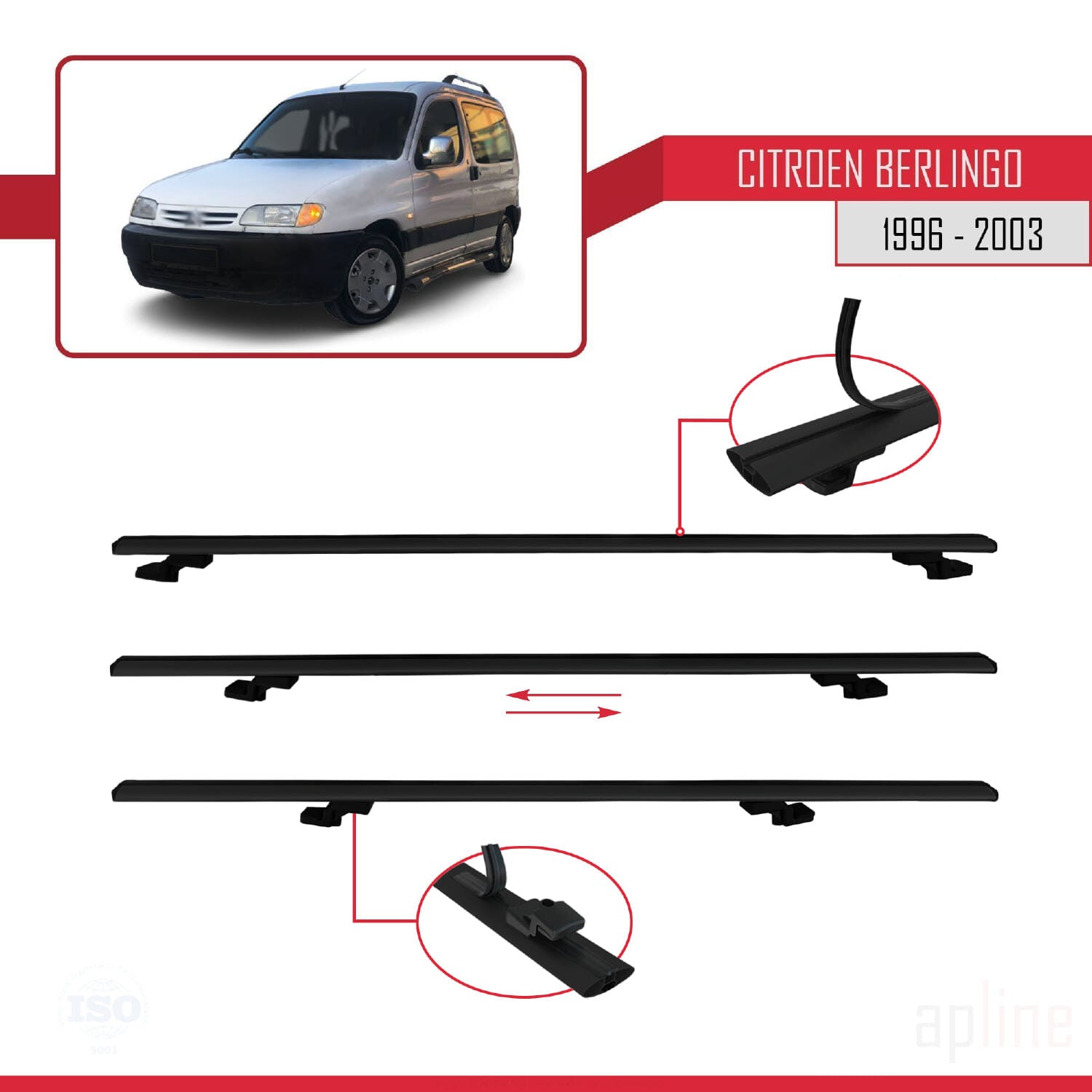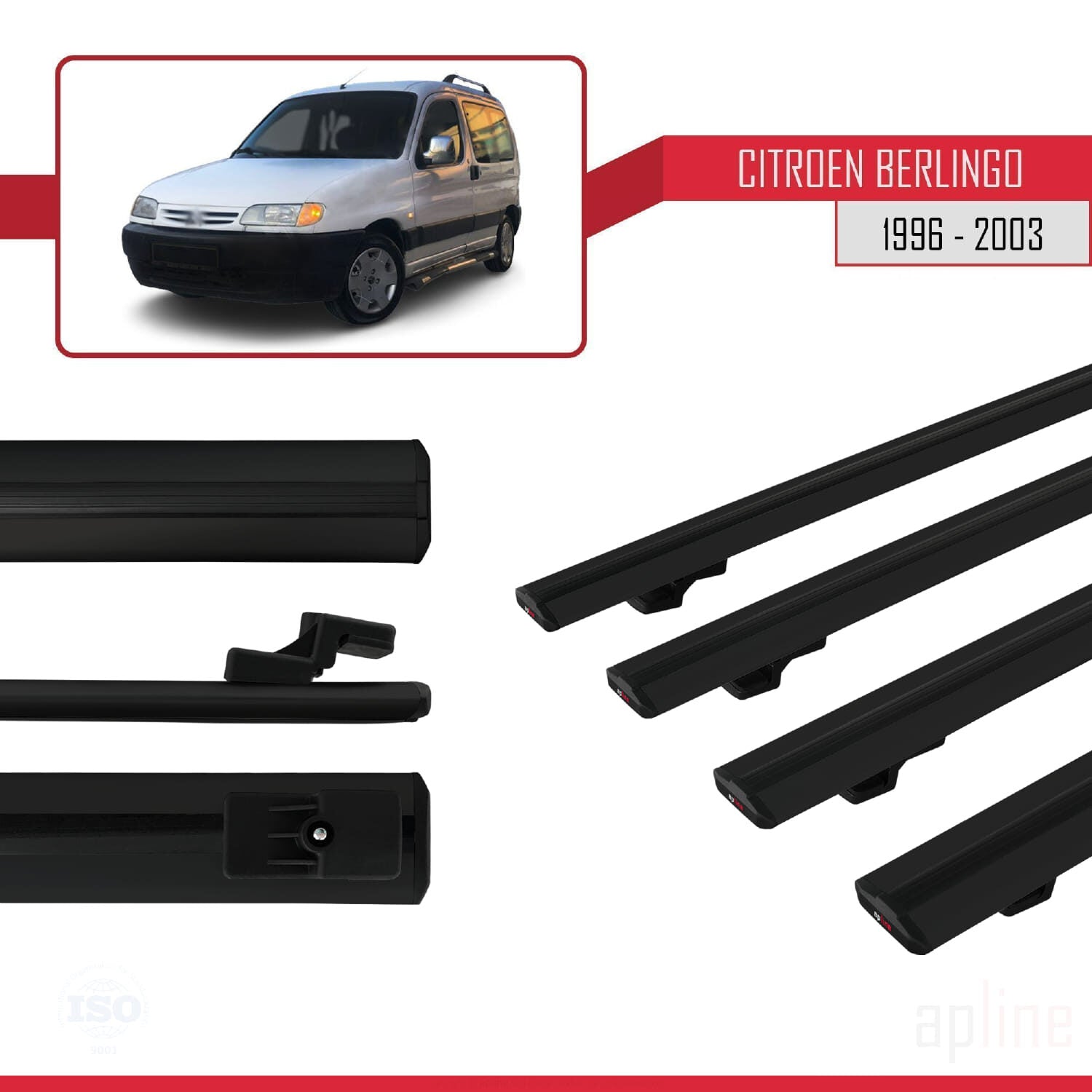 Compatible avec Citroen Berlingo (M49) 1996-2003 BASIC Model Barres de Toit Railing Porte-Bagages de Voiture Noir Aluminium 4 Barres