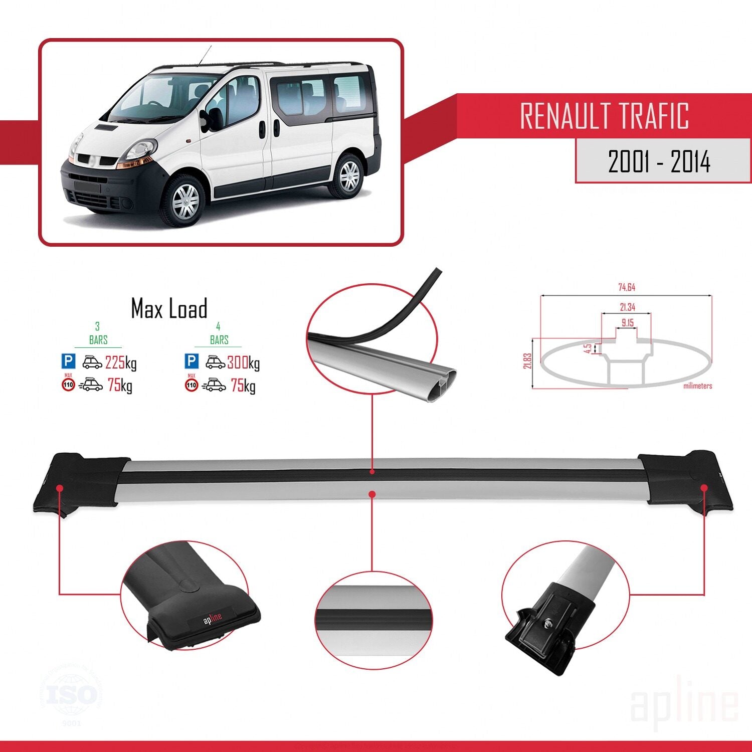 Compatible avec Renault Trafic 2 (X83) 2001-2014 FLY Model Barres de Toit Railing Porte-Bagages de Voiture Gris Aluminium 3 Barres