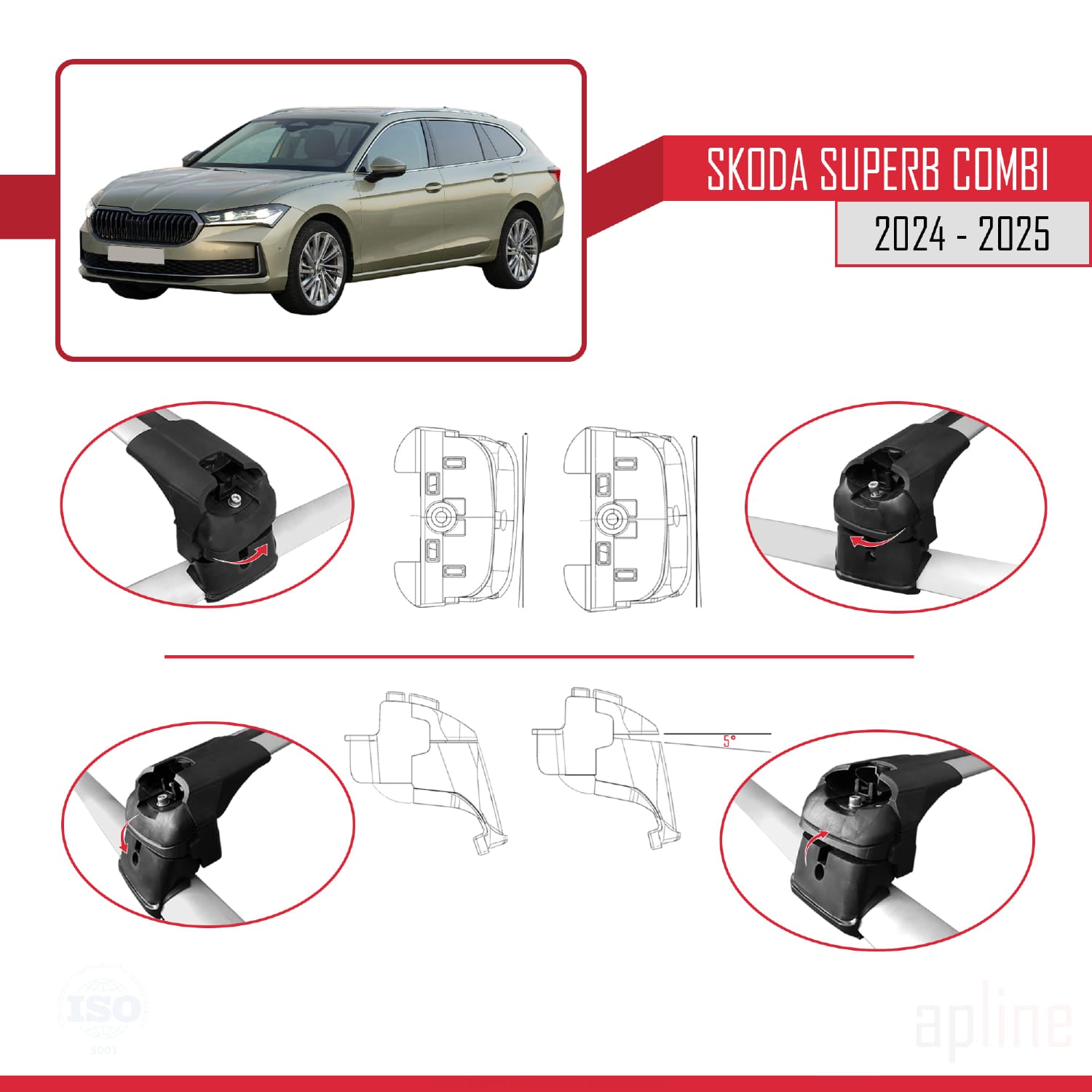 Compatible avec Skoda Superb Combi 2024-2025 ACE-2 Barres de Toit Railing Porte-Bagages de Voiture Gris Aluminium 2 Barres