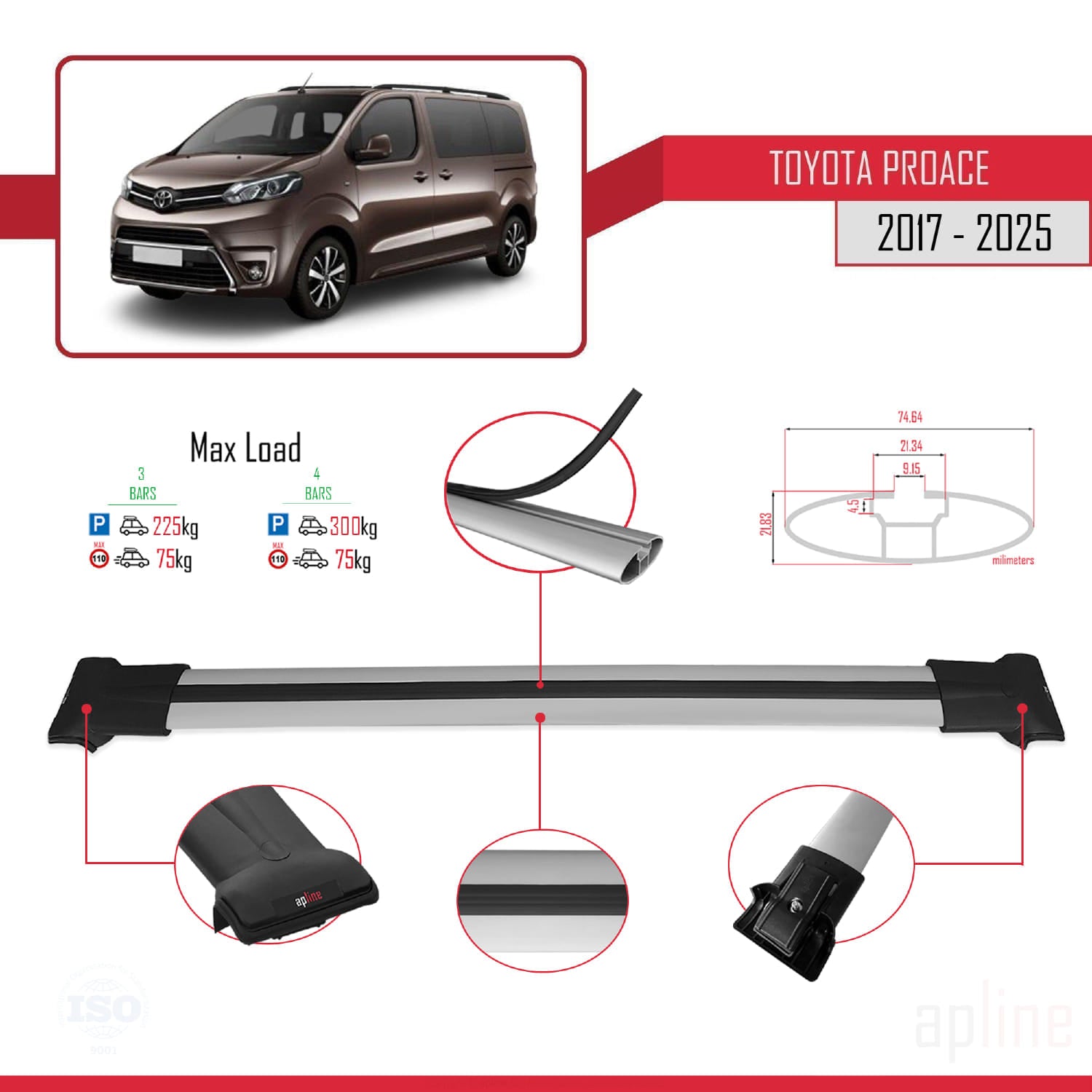 Compatible avec Toyota Proace 2017-2025 FLY Model Barres de Toit Railing Porte-Bagages de Voiture Gris Aluminium 4 Barres