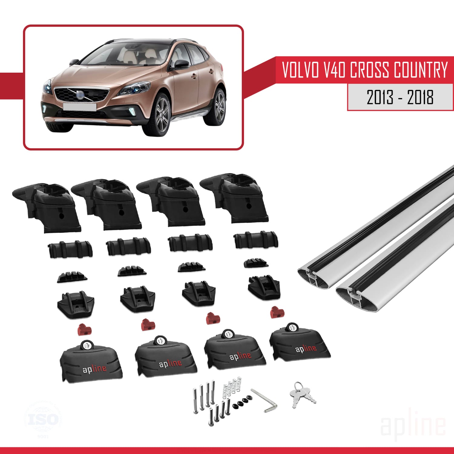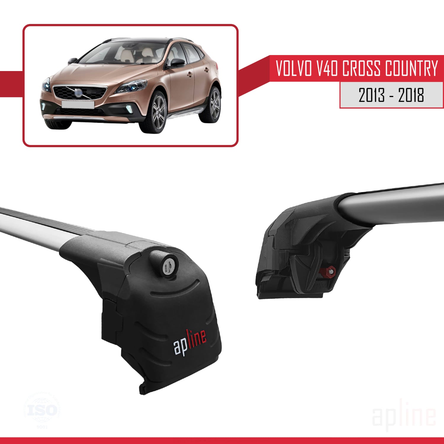 Compatible avec Volvo V40 Cross Country 2013-2018 ACE-2 Barres de Toit Railing Porte-Bagages de Voiture Gris Aluminium 2 Barres