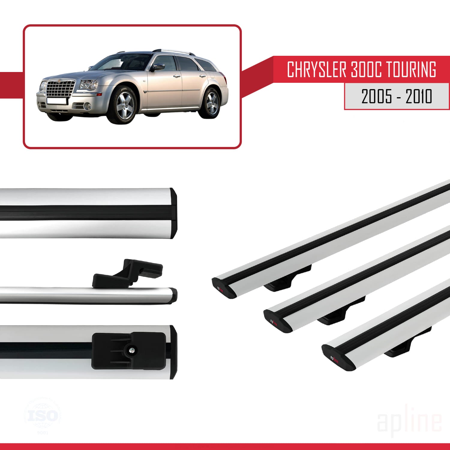 Compatible avec Chrysler 300C Touring 2005-2010 BASIC Model Barres de Toit Railing Porte-Bagages de Voiture Gris Aluminium 3 Barres