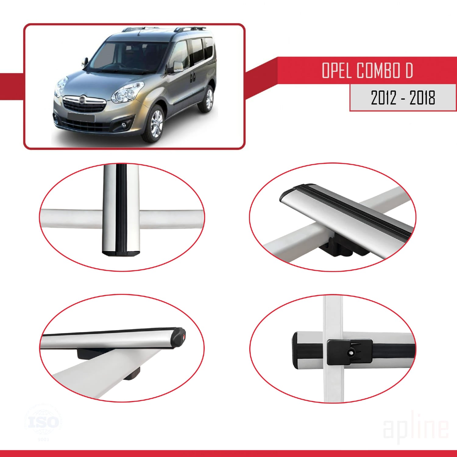 Compatible avec Opel Combo D 2012-2018 BASIC Model Barres de Toit Railing Porte-Bagages de Voiture Gris Aluminium 2 Barres