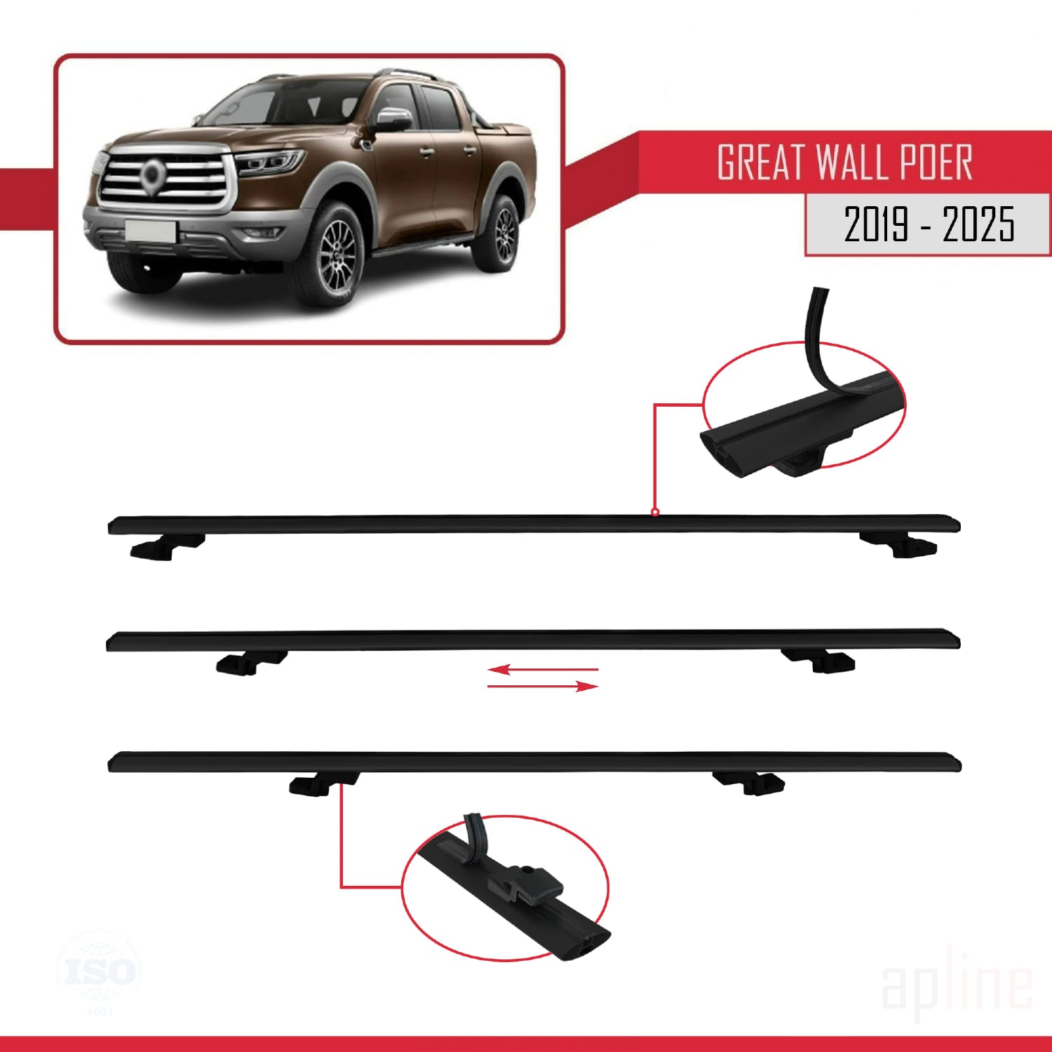 Compatible avec Great Wall Poer 2019-2025 BASIC Model Barres de Toit Railing Porte-Bagages de Voiture Noir Aluminium 3 Barres