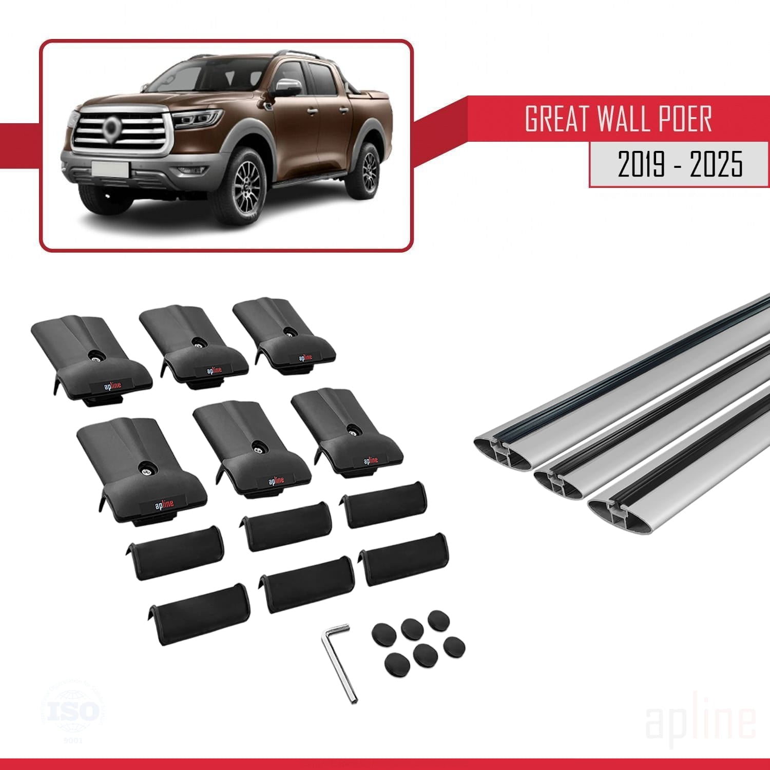 Compatible avec Great Wall Poer 2019-2025 FLY Model Barres de Toit Railing Porte-Bagages de Voiture Gris Aluminium 3 Barres