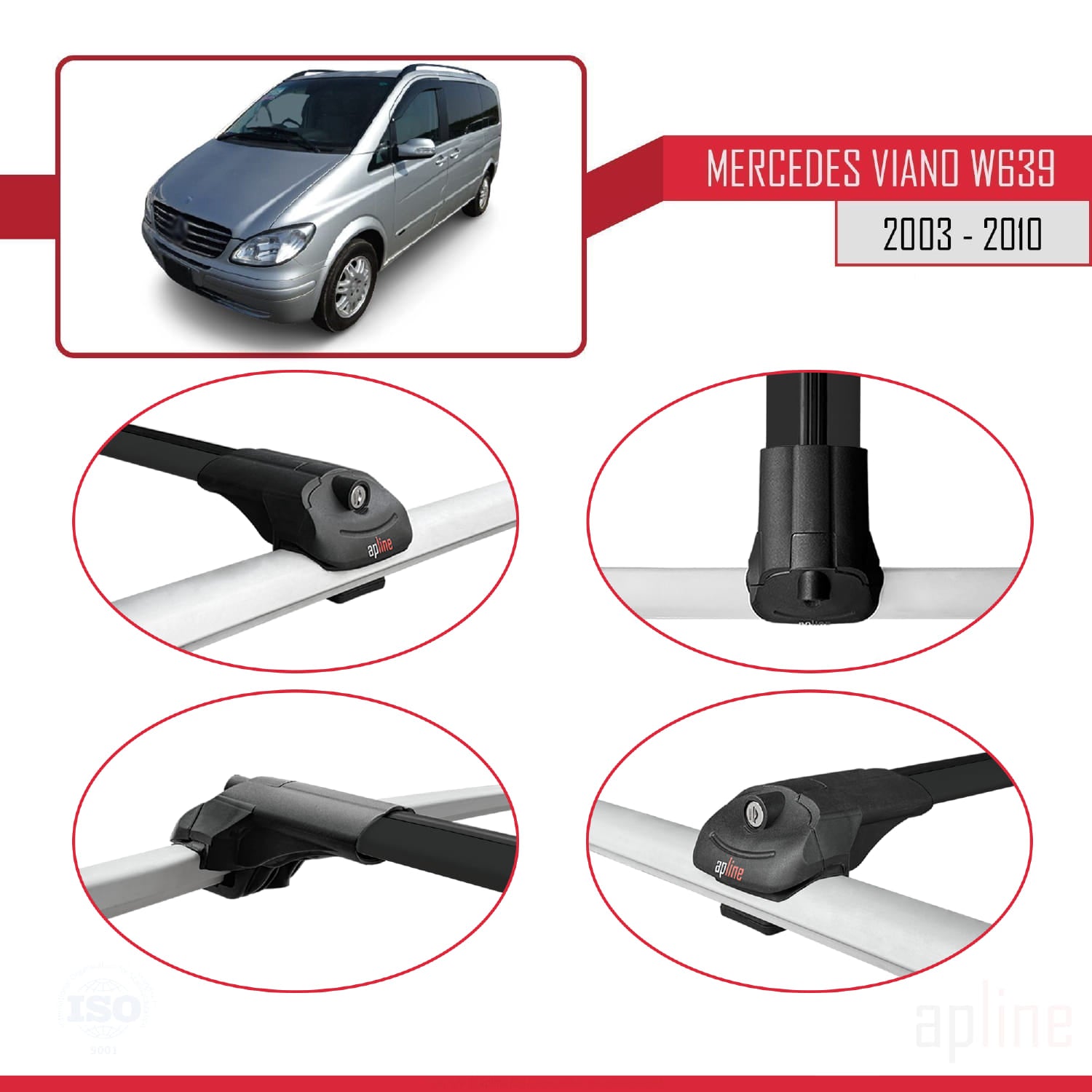 Compatible avec Mercedes Viano 2 (W639) Pre-Facelift 2003-2010 ACE-1 Barres de Toit Railing Porte-Bagages de Voiture Noir Aluminium 2 Barres
