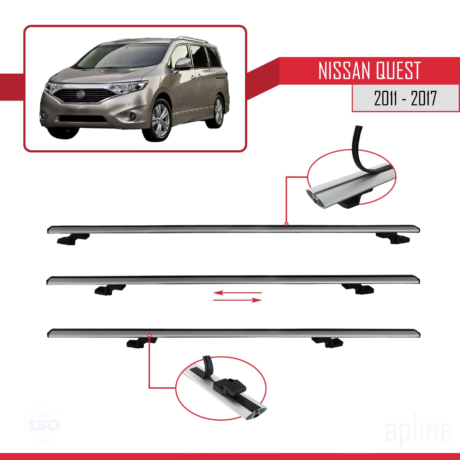 Compatible avec Nissan Quest 2011-2017 BASIC Model Barres de Toit Railing Porte-Bagages de Voiture Gris Aluminium 4 Barres