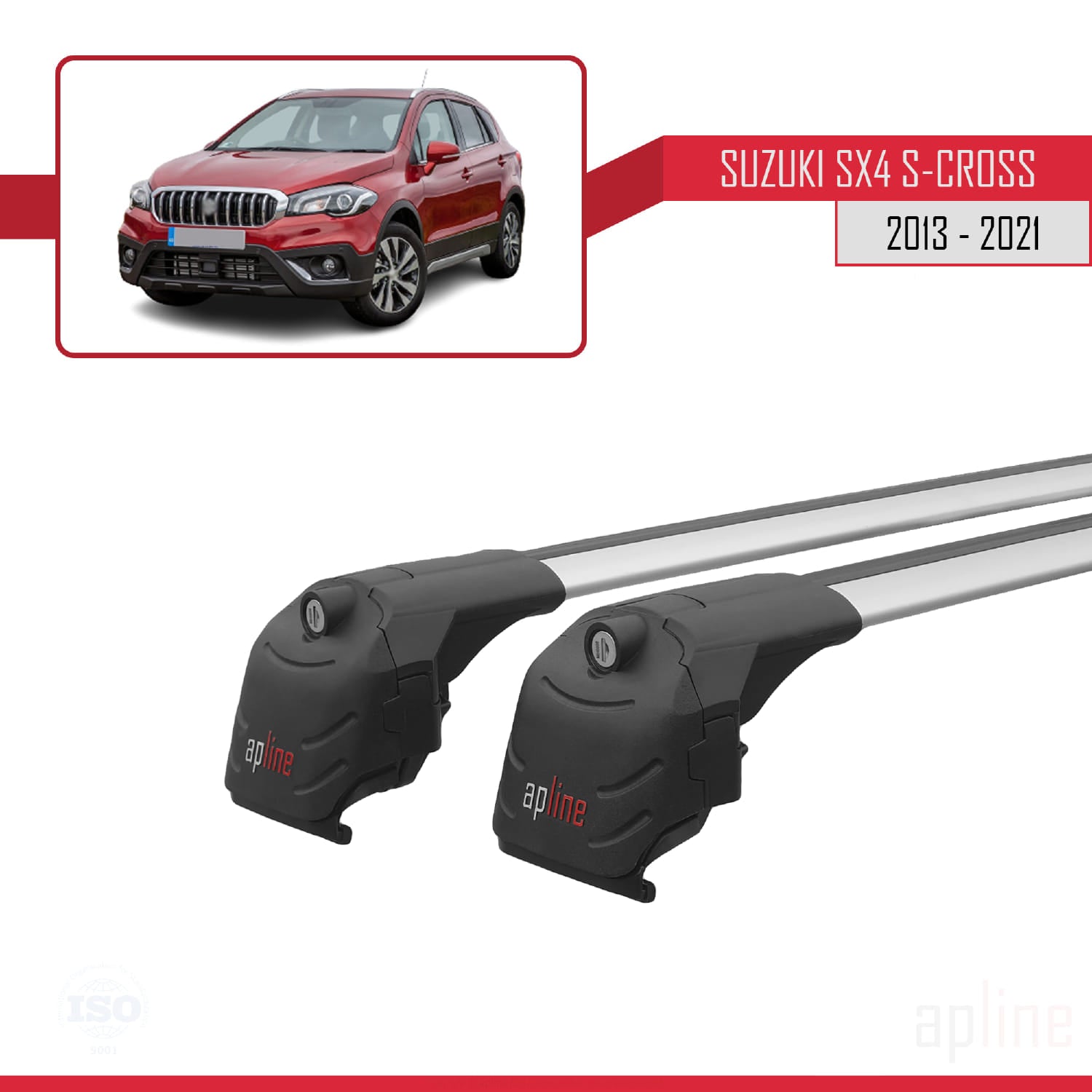 Compatible avec Suzuki SX4 S-Cross 3 (JYB) 2013-2021 ACE-2 Barres de Toit Railing Porte-Bagages de Voiture Gris Aluminium 2 Barres