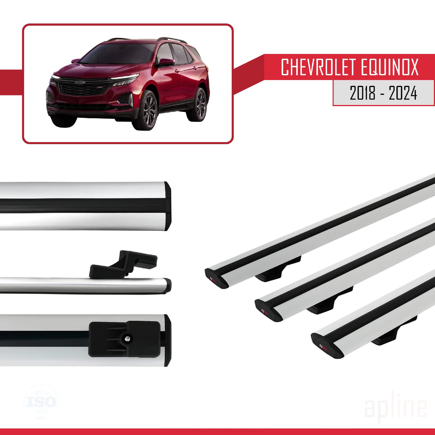 Kompatibel mit Chevrolet Equinox 2018-2024 BASIC Modell Dachgepäckträger, graues Aluminium, 3 Stangen