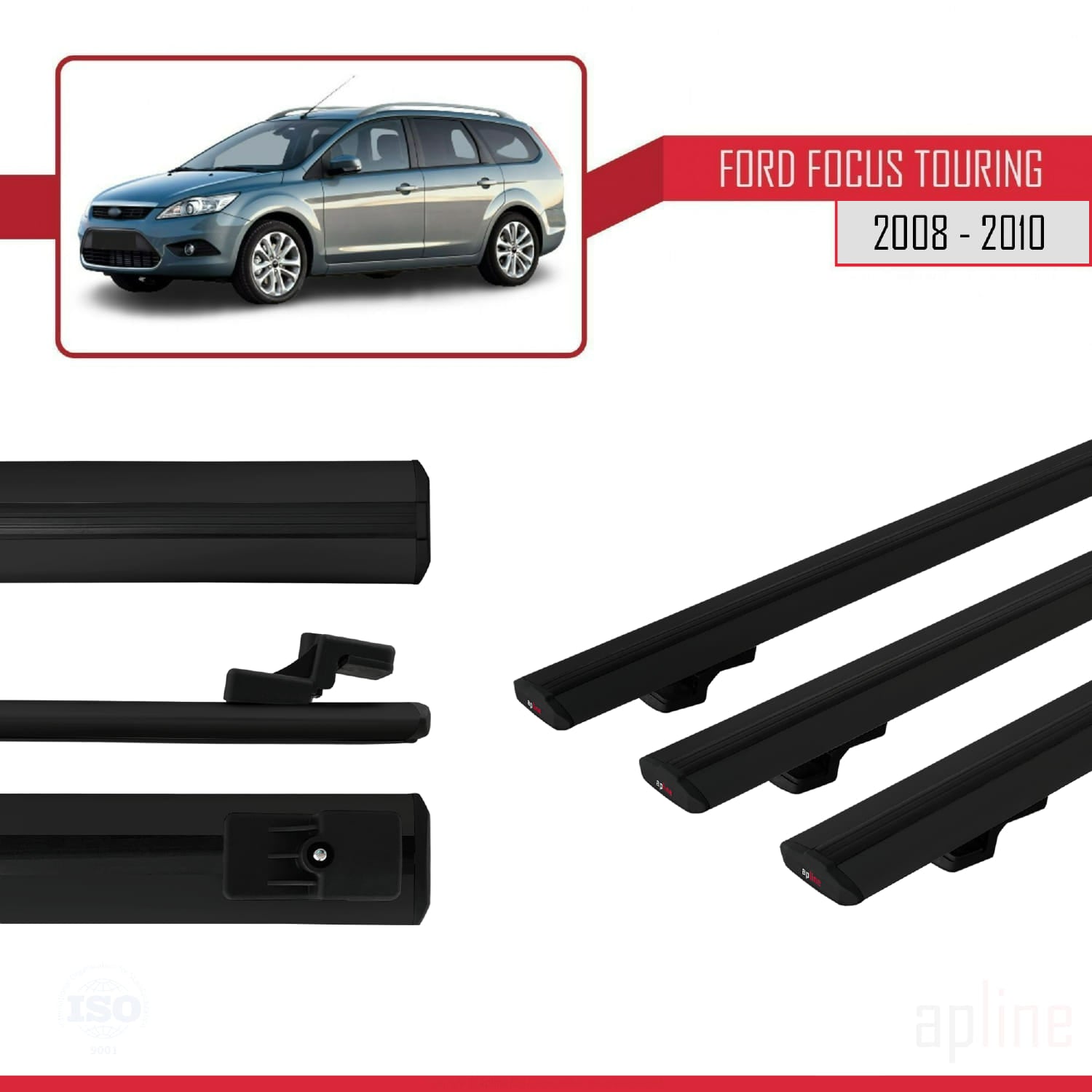 Kompatibel mit Ford Focus 2 (C307) Turnier 2008-2010 BASIC Model Relingträger Dachträger Auto Gepäckträger Schwarz Aluminium 3 Stangen