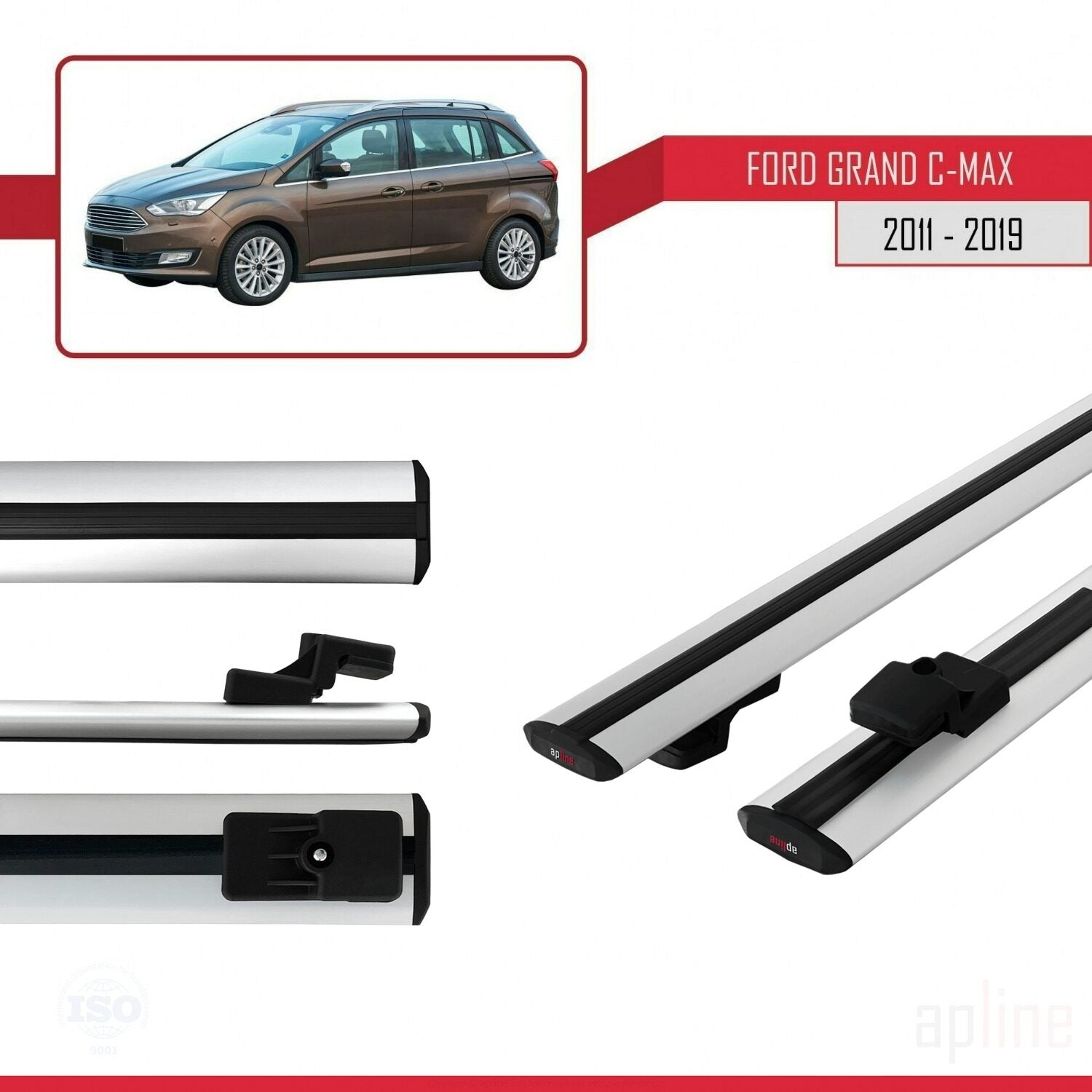 Kompatibel mit Ford Grand C-Max (C344) 2011-2019 BASIC Model Relingträger Dachträger Auto Gepäckträger Grau Aluminium 2 Stangen