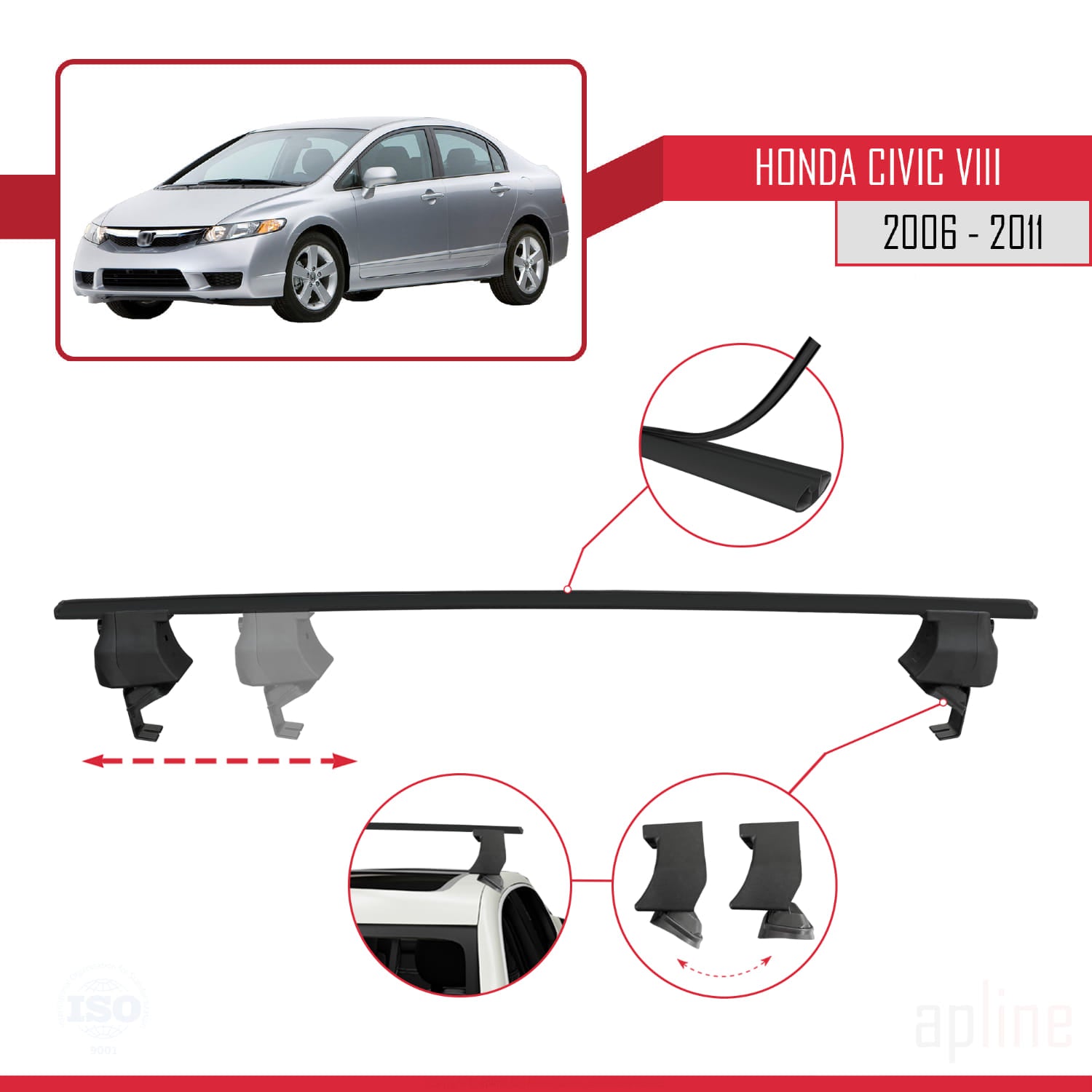 Compatible avec Honda Civic 8 V3 Berline 2006-2011 ACE-4 Barres de Toit Railing Porte-Bagages de Voiture Noir Aluminium 2 Barres
