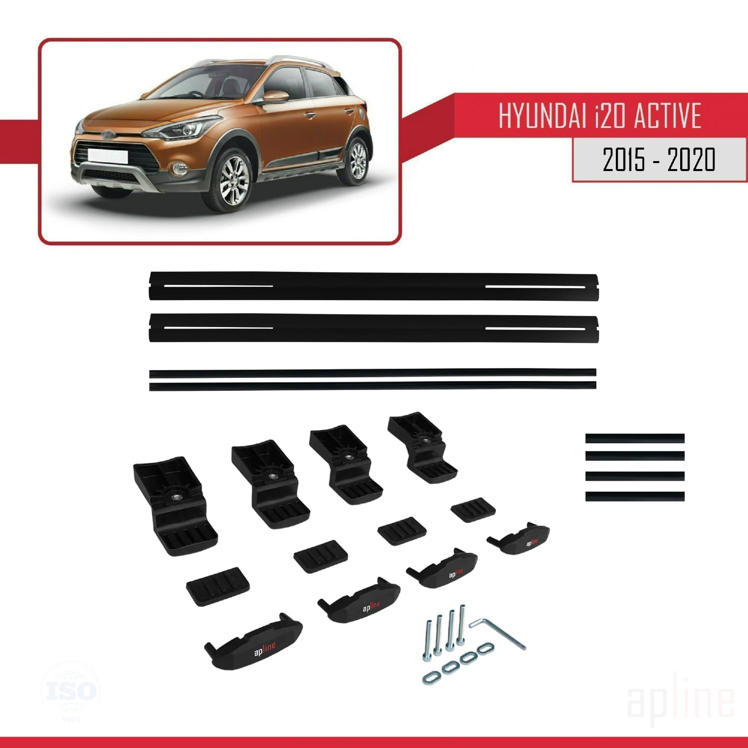 Kompatibel mit Hyundai i20 II Active 2015-2019 BASIC Model Relingträger Dachträger Auto Gepäckträger Schwarz Aluminium 2 Stangen
