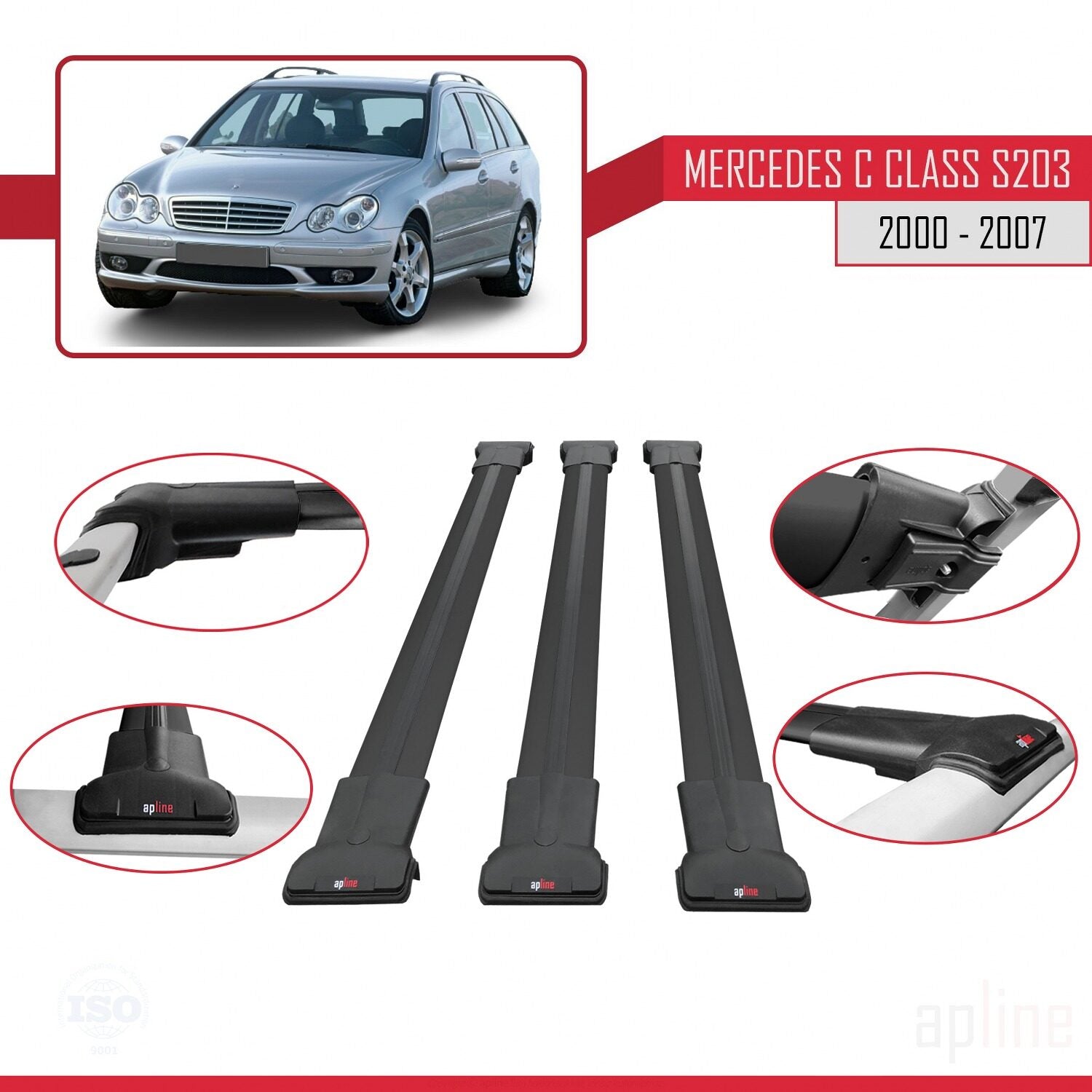 Kompatibel mit Mercedes C Klasse 2 (S203) 2000-2007 FLY Model Relingträger Dachträger Auto Gepäckträger Schwarz Aluminium 3 Stangen