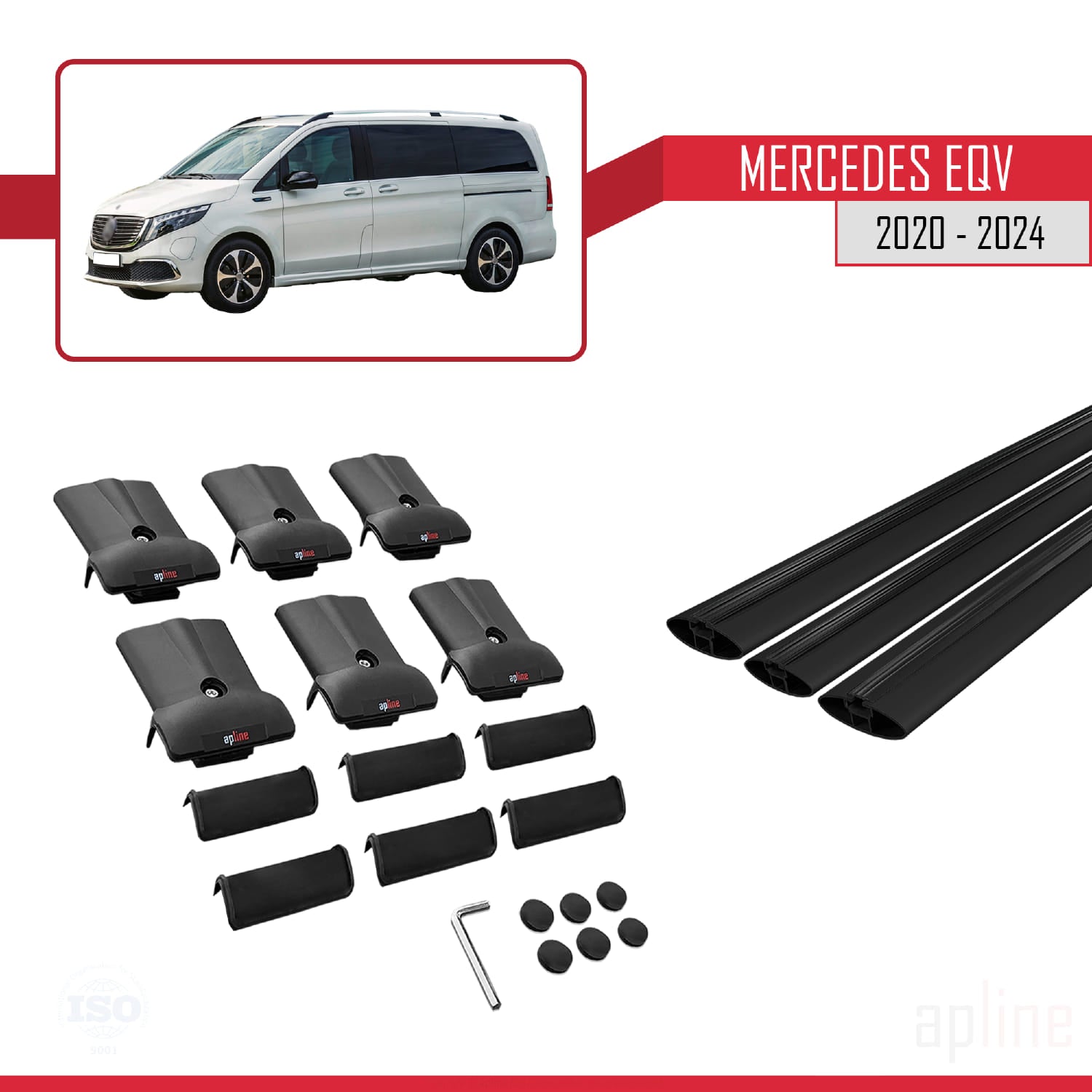 Kompatibel mit Mercedes EQV (W447) 2020-2025 FLY Model Relingträger Dachträger Auto Gepäckträger Schwarz Aluminium 3 Stangen