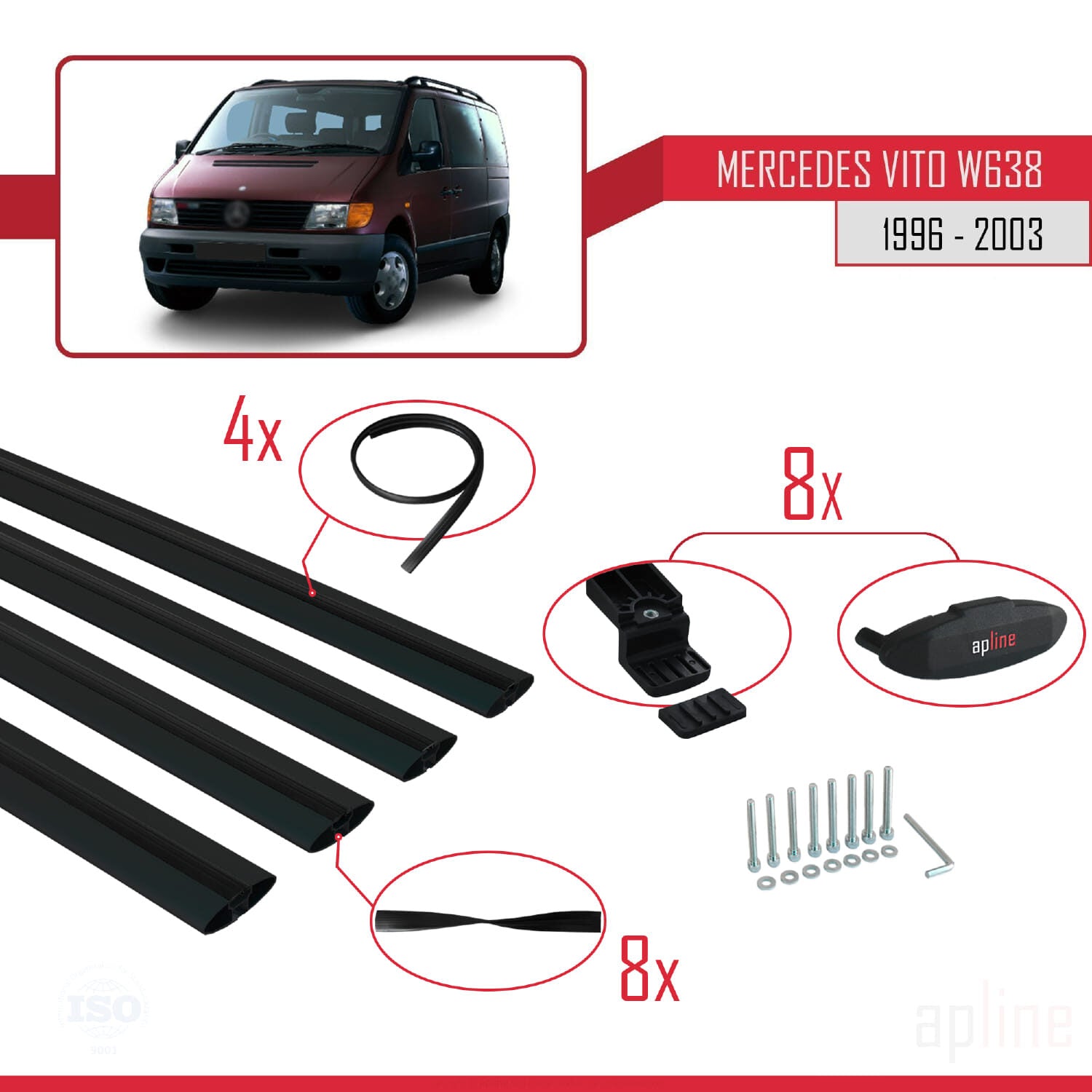 Compatible avec Mercedes Vito (W638) 1996-2003 BASIC Model Barres de Toit Railing Porte-Bagages de Voiture Noir Aluminium 4 Barres