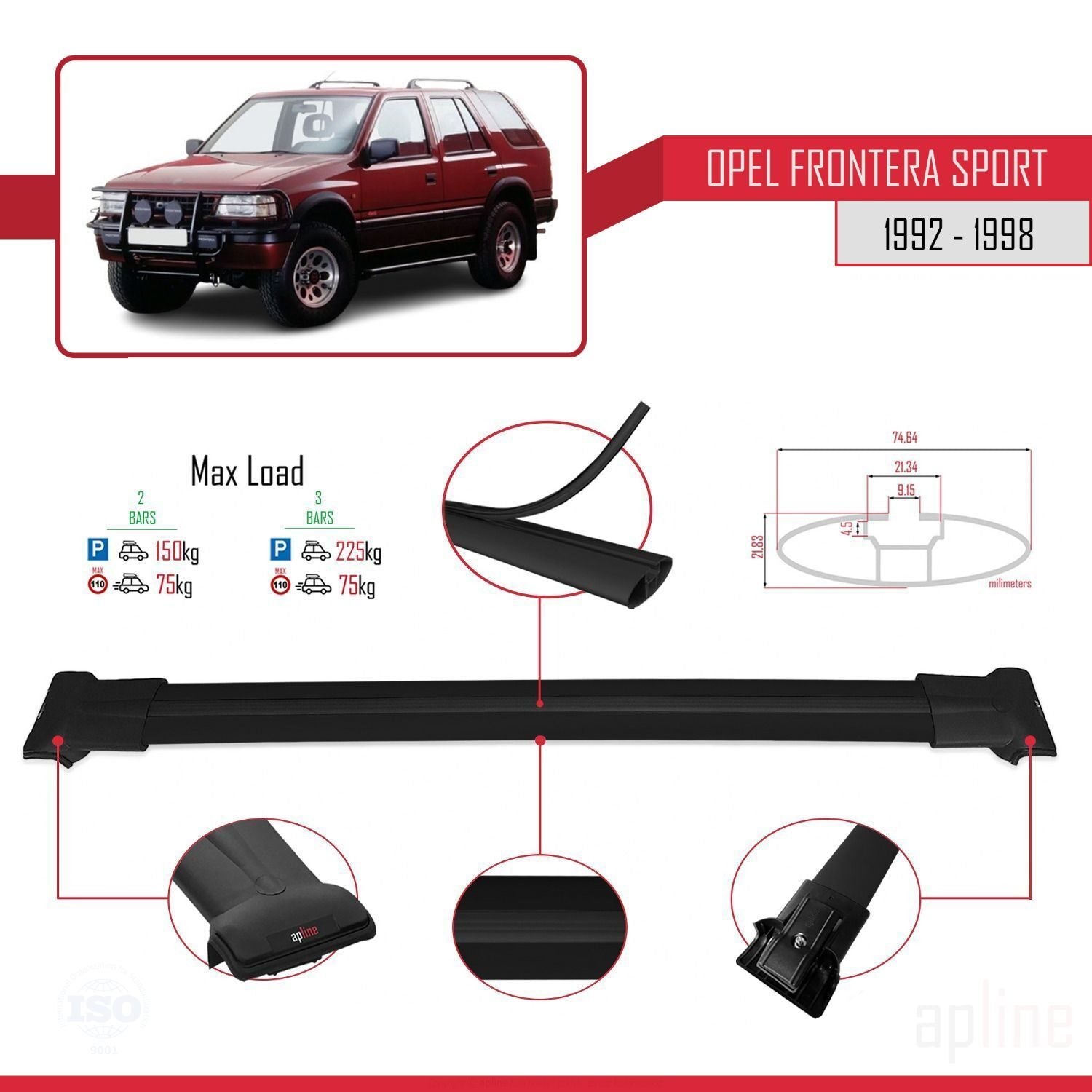 Kompatibel mit Opel Frontera Sport 1992-1998 FLY Model Relingträger Dachträger Auto Gepäckträger Schwarz Aluminium 2 Stangen