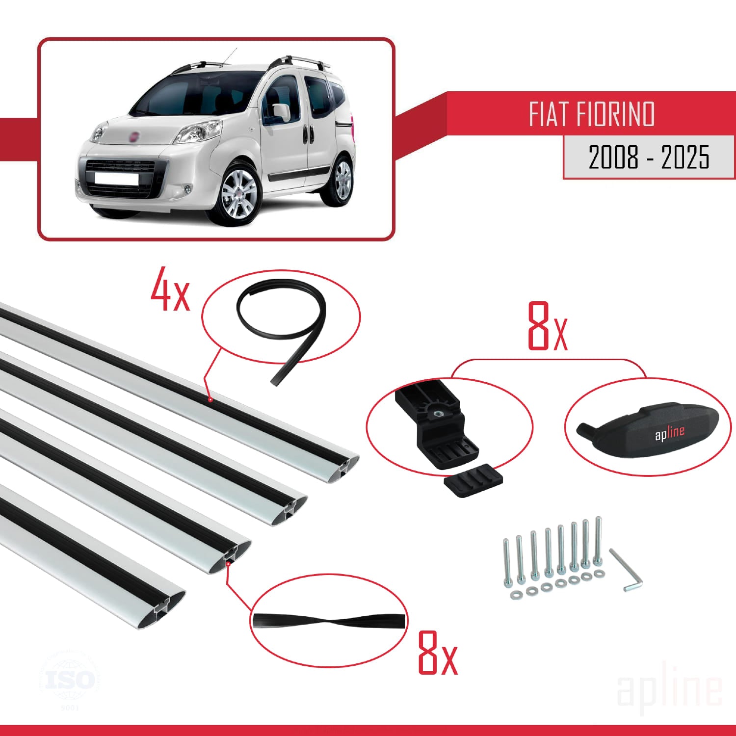 Compatible avec Fiat Fiorino 3 2008-2025 BASIC Model Barres de Toit Railing Porte-Bagages de Voiture Gris Aluminium 4 Barres