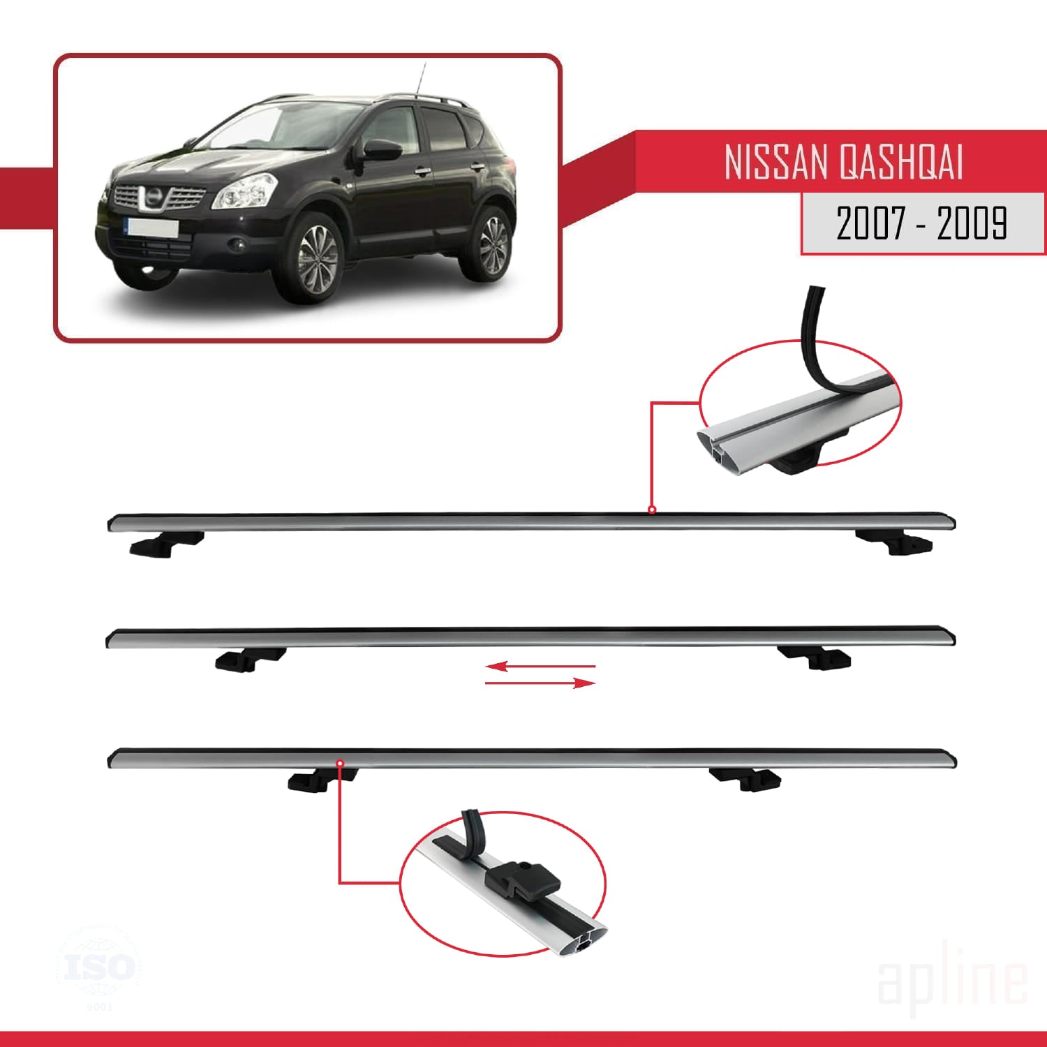 Compatible avec Nissan Qashqai (J10) Pre-Facelift 2007-2009 BASIC Model Barres de Toit Railing Porte-Bagages de Voiture Gris Aluminium 2 Barres
