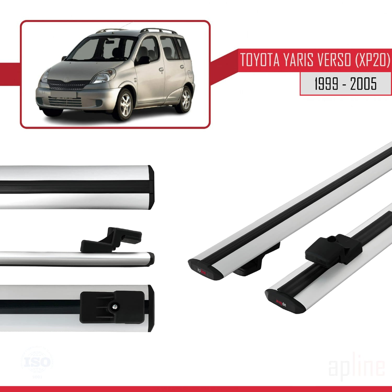 Compatible avec Toyota Yaris Verso (XP20) 1999-2005 BASIC Model Barres de Toit Railing Porte-Bagages de Voiture Gris Aluminium 2 Barres