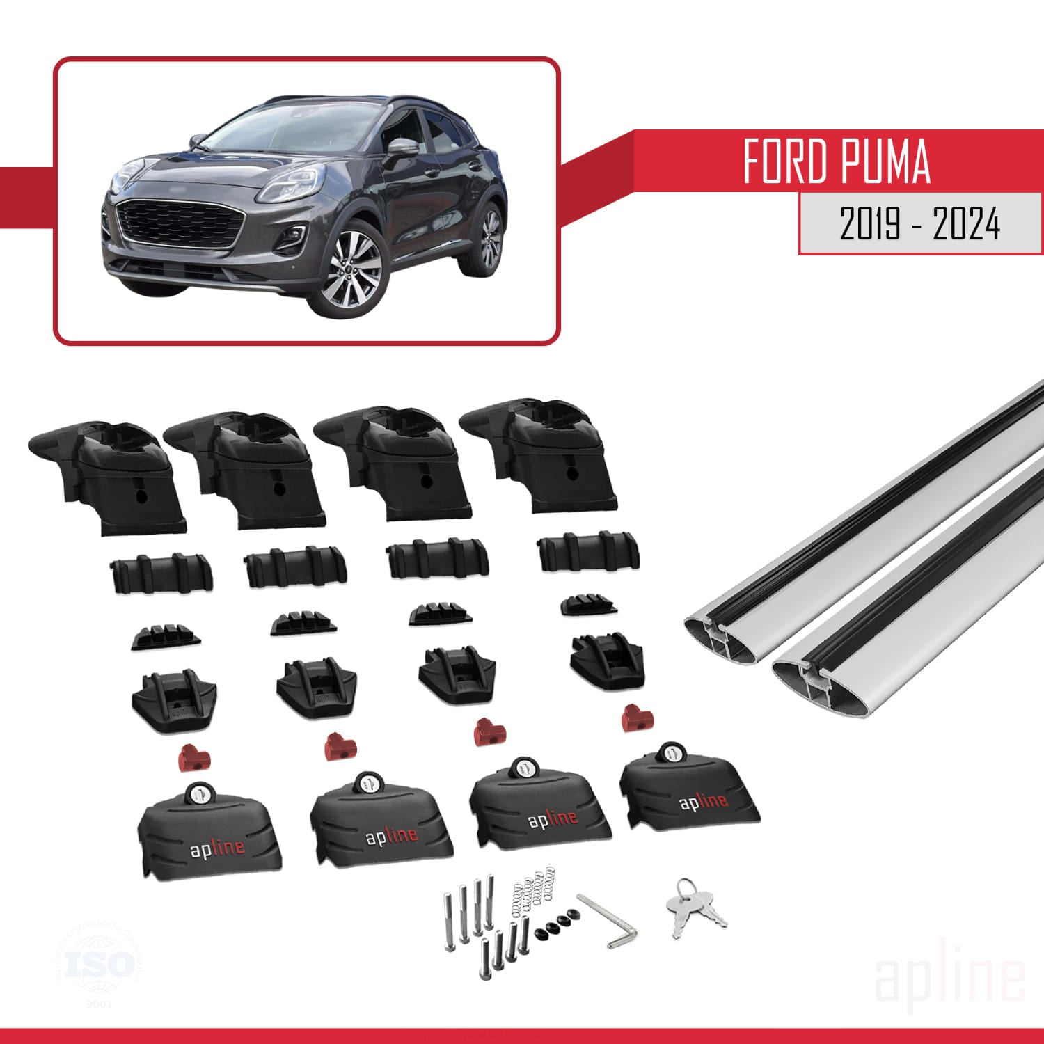 Compatible avec Ford Puma 2019-2024 ACE-2 Barres de Toit Railing Porte-Bagages de Voiture Gris Aluminium 2 Barres