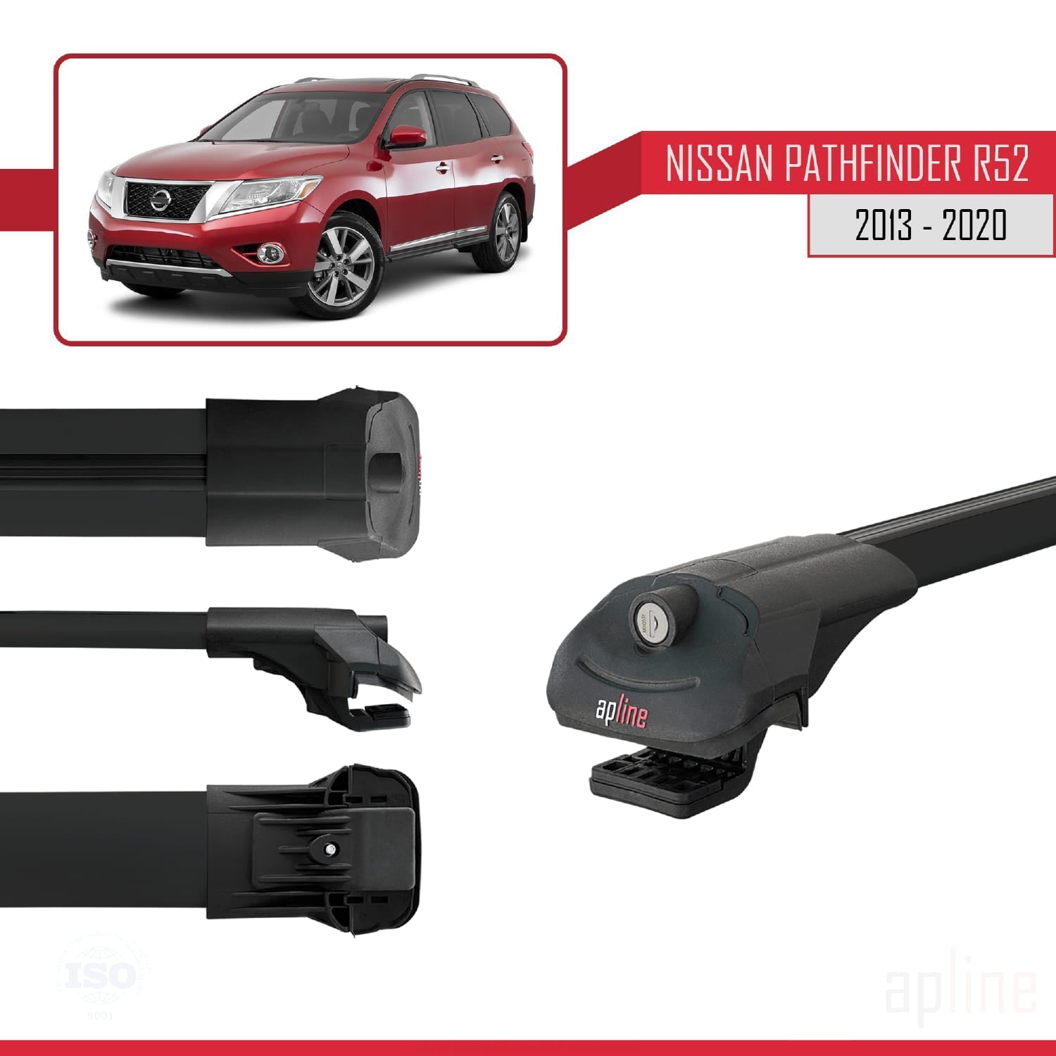 Compatible avec Nissan Pathfinder 4 (R52) 2013-2020 ACE-1 Barres de Toit Railing Porte-Bagages de Voiture Noir Aluminium 2 Barres