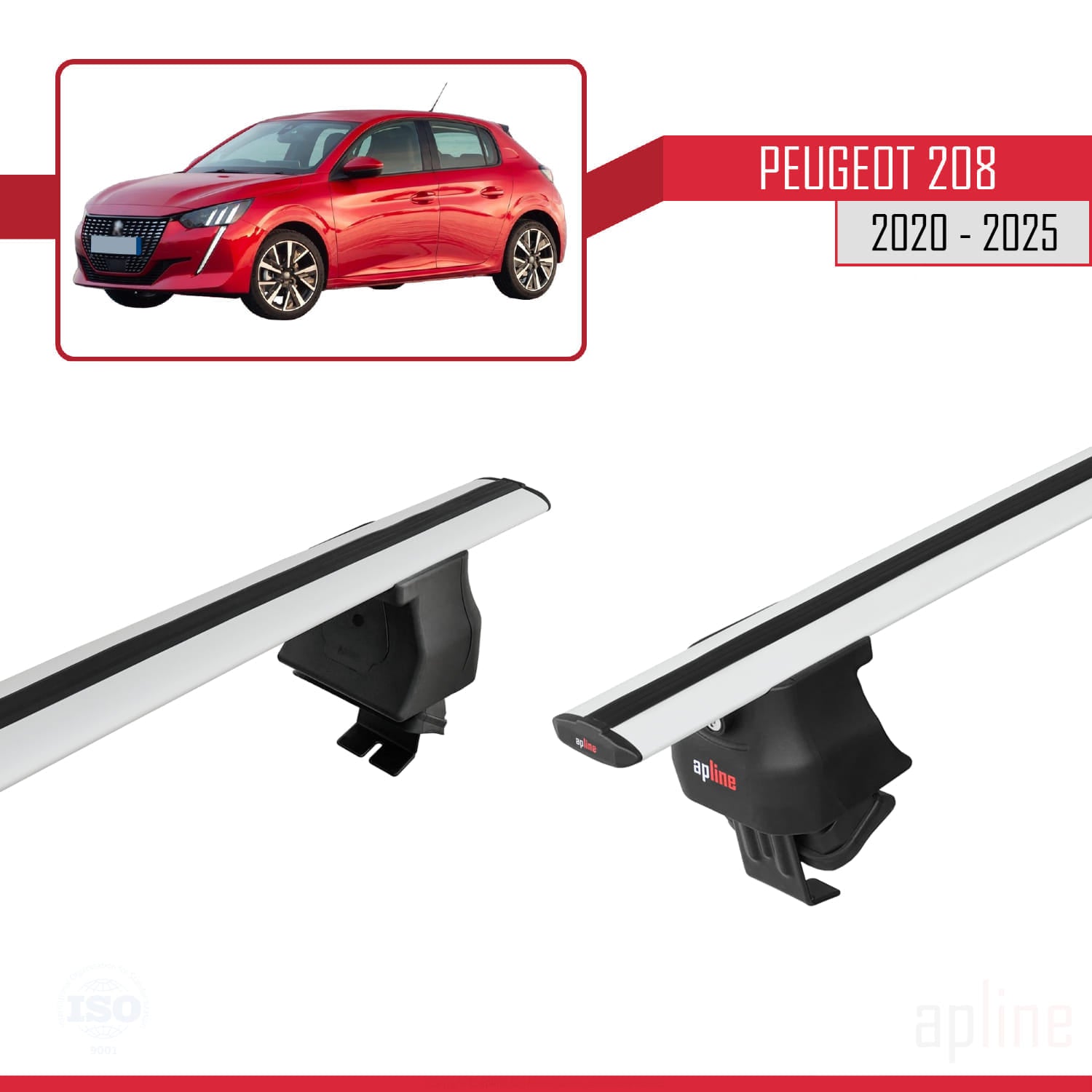 Compatible avec Peugeot 208 II (P21) 2020-2025 ACE-4 Barres de Toit Railing Porte-Bagages de Voiture Gris Aluminium 2 Barres