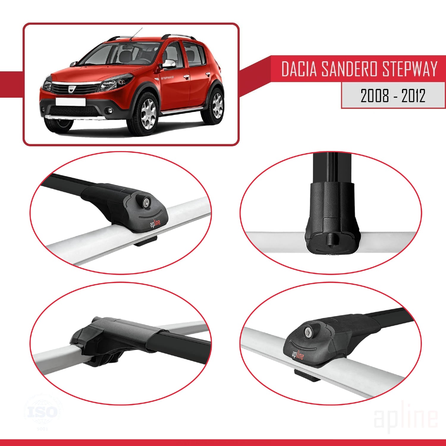 Compatible avec Dacia Sandero Stepway 2008-2012 ACE-1 Barres de Toit Railing Porte-Bagages de Voiture Noir Aluminium 2 Barres