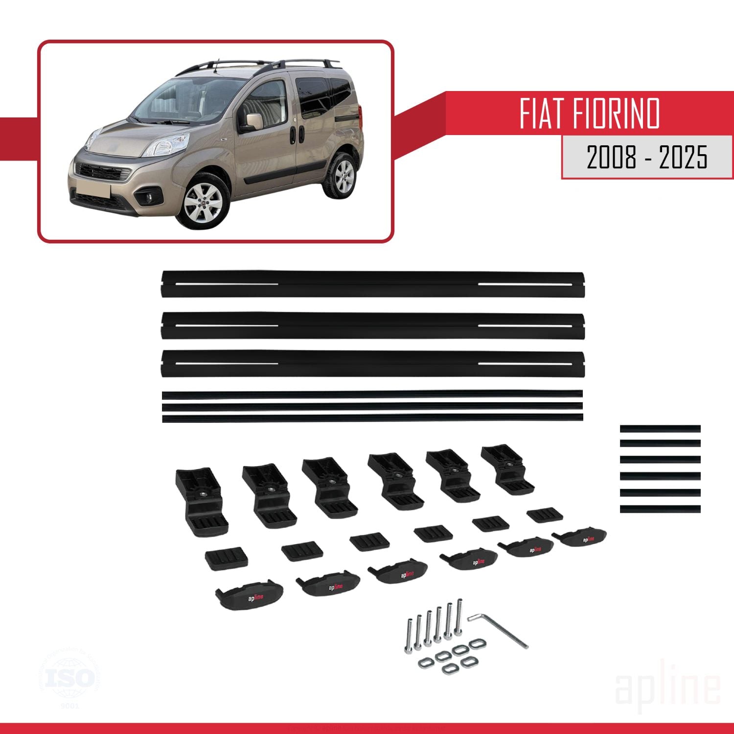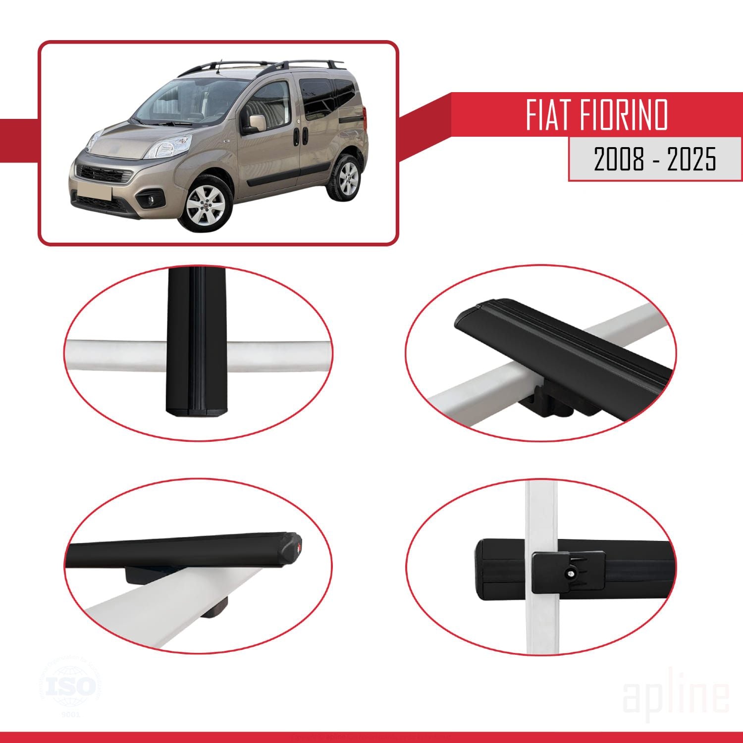 Compatible avec Fiat Fiorino (Modèle Tubulaire) 2008-2025 BASIC Model Barres de Toit Railing Porte-Bagages de Voiture Noir Aluminium 3 Barres