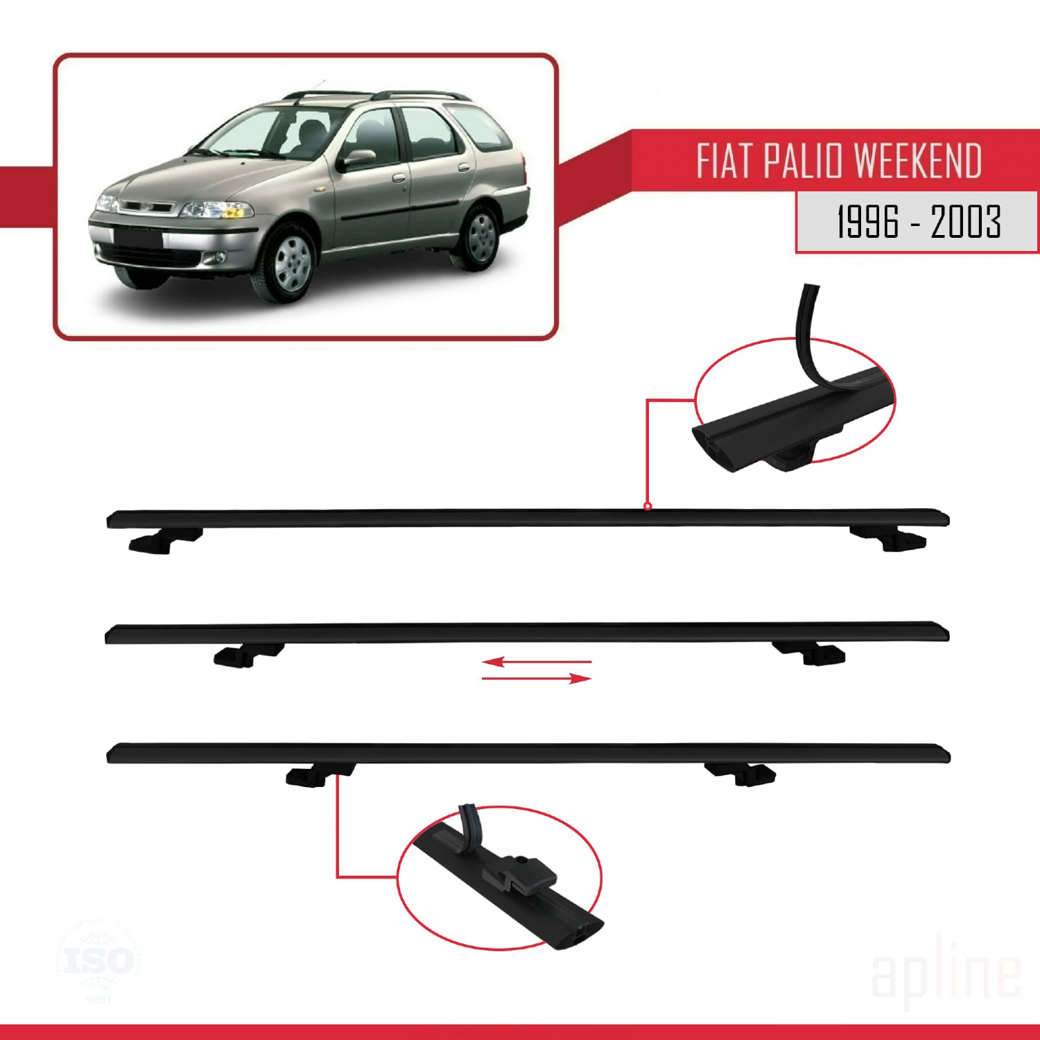 Compatible avec Fiat Palio (178) Weekend 1996-2003 BASIC Model Barres de Toit Railing Porte-Bagages de Voiture Noir Aluminium 3 Barres