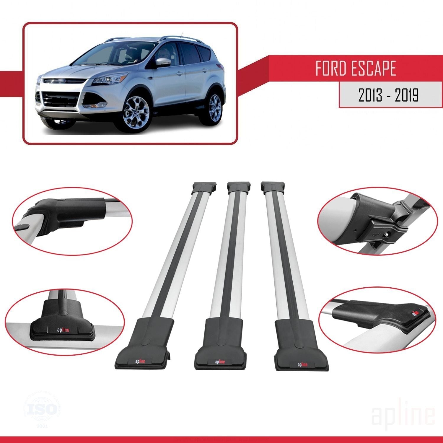 Compatible con Ford Escape 3 2013-2019 FLY Model Barras de Techo Auto Portaequipajes Barras Transversales Gris Aluminio 3 Barras