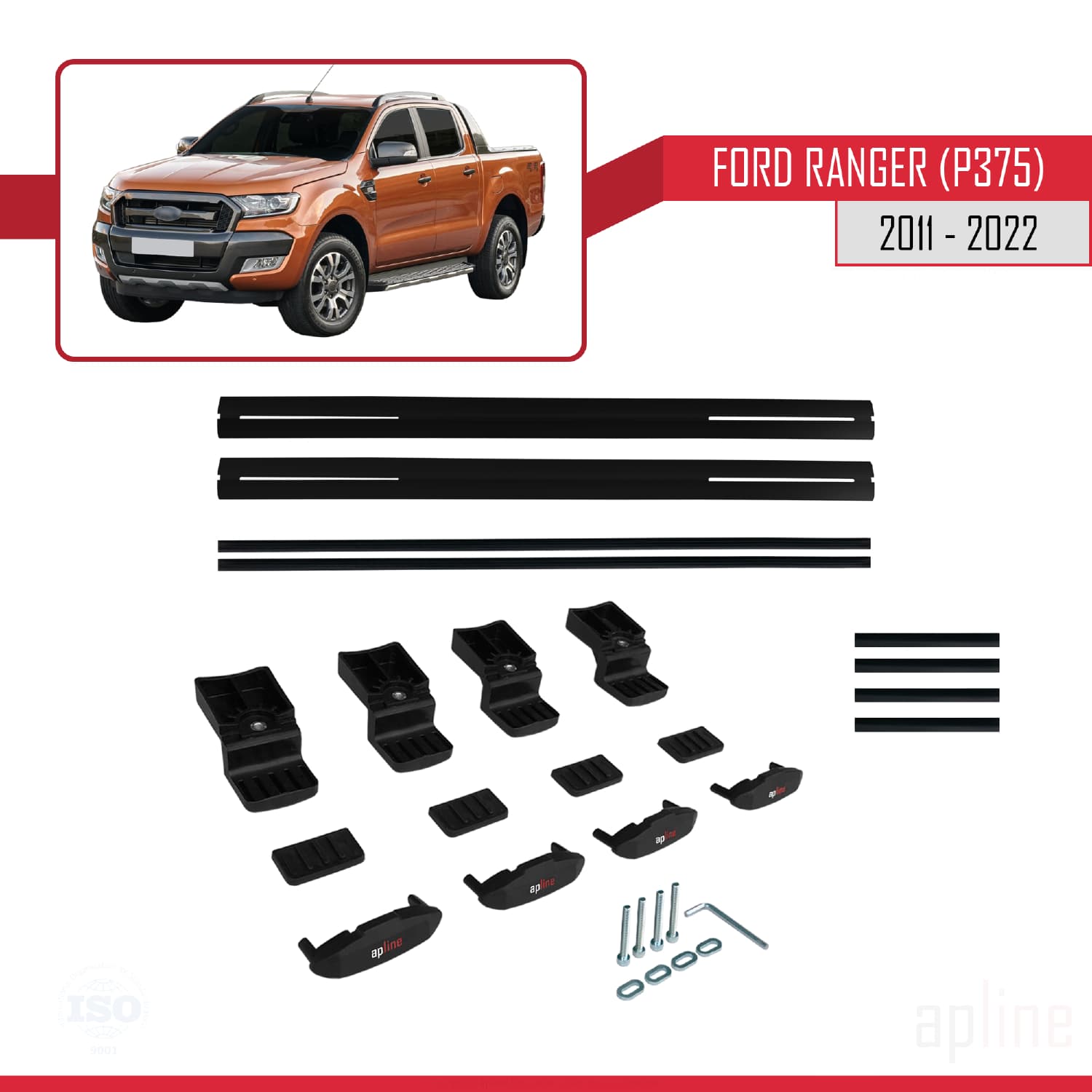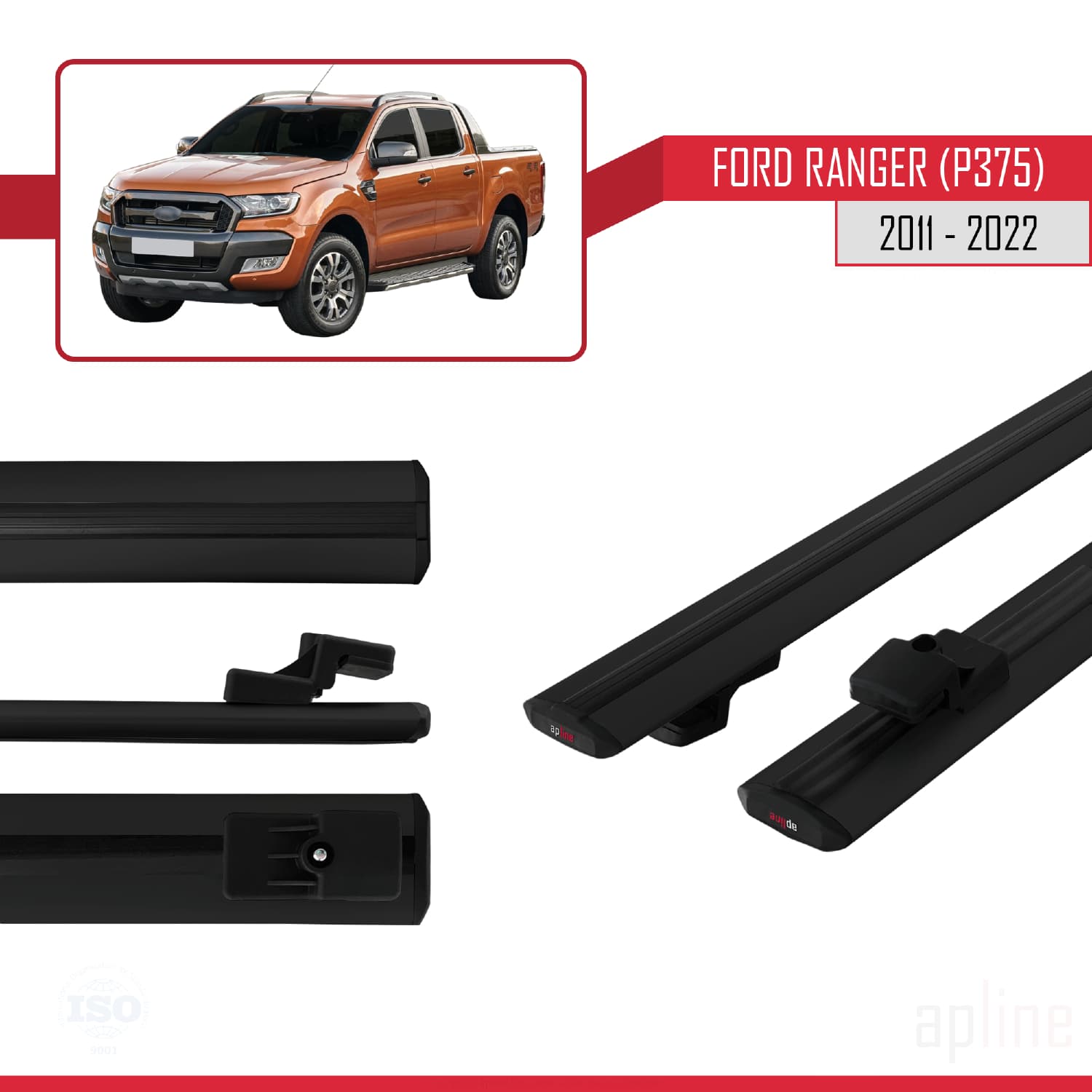 Compatible con Ford Ranger (P375) 2011-2022 BASIC Model Barras de Techo Auto Portaequipajes Barras Transversales Negro Aluminio 2 Barras