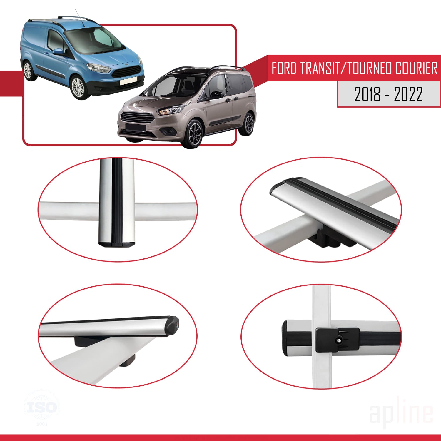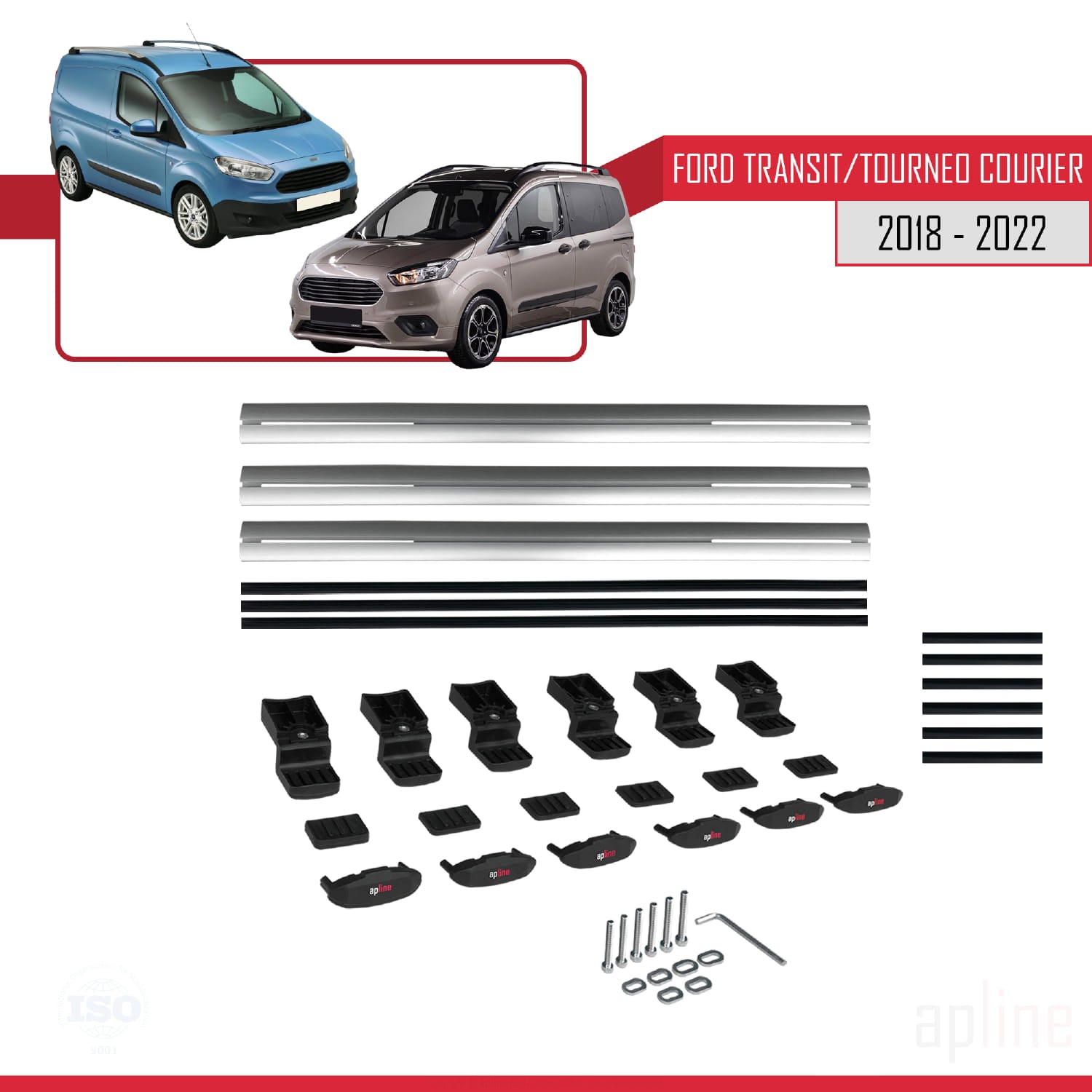Compatible avec Ford Transit/Tourneo Courier Post-Facelift 2018-2022 BASIC Model Barres de Toit Railing Porte-Bagages de Voiture Gris Aluminium 3 Barres