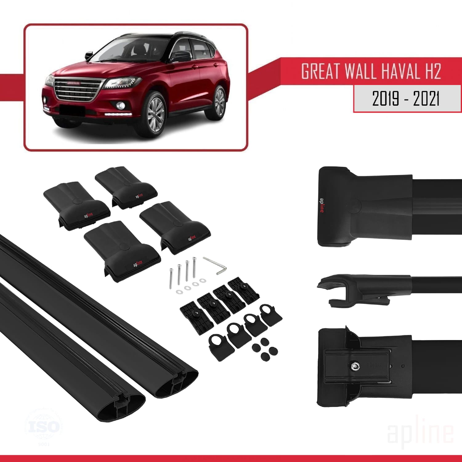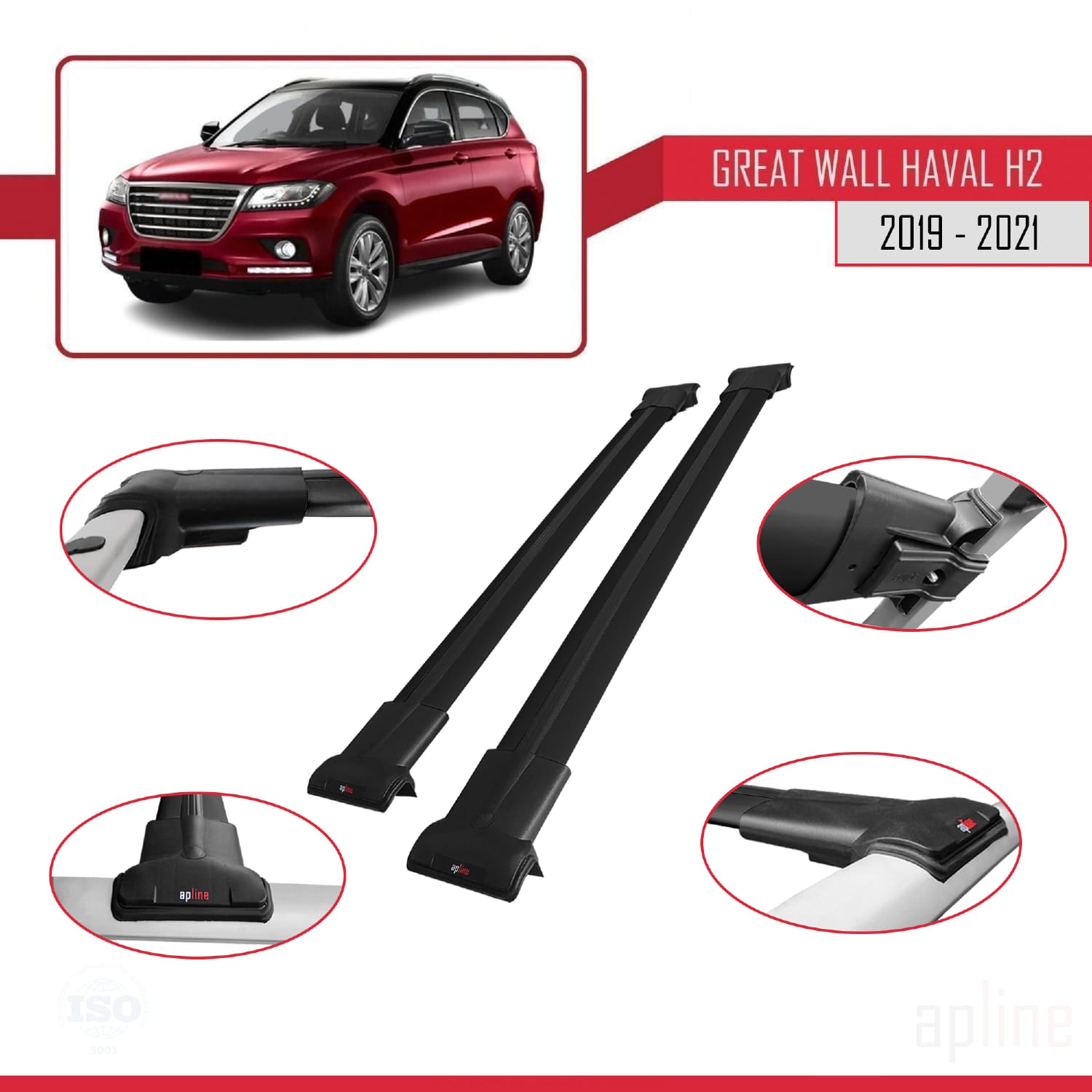 Compatible con Great Wall Haval H2 2019-2021 FLY Model Barras de Techo Auto Portaequipajes Barras Transversales Negro Aluminio 2 Barras
