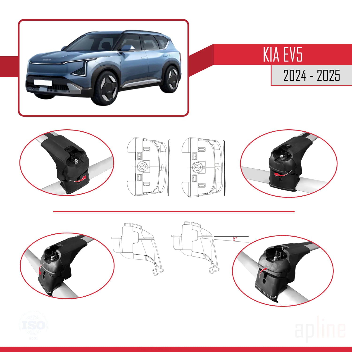 Este producto es apto para modelos sin espacio entre el techo del vehículo y la barra de techo.