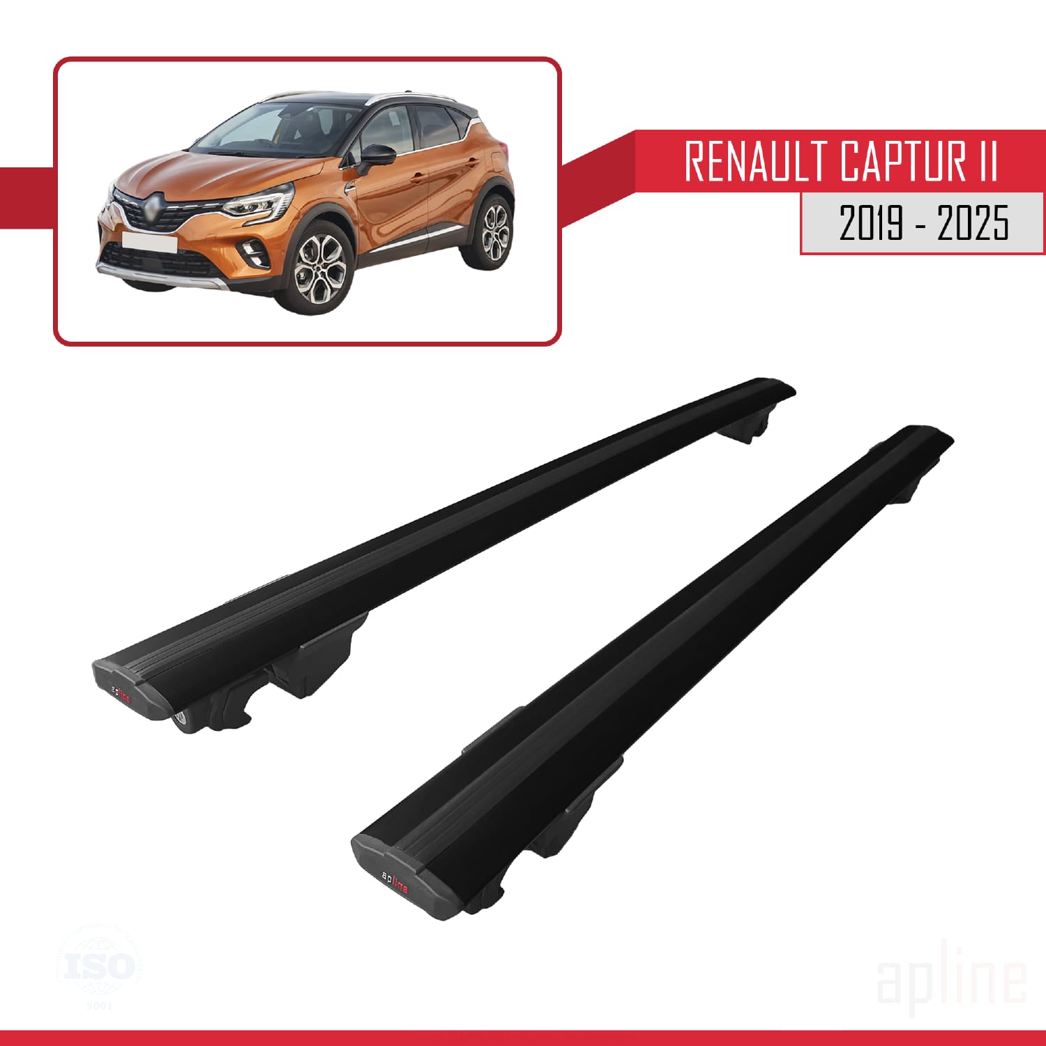Compatible avec Renault Captur 2 2019-2025 HOOK Model Barres de Toit Railing Porte-Bagages de Voiture Noir Aluminium 2 Barres