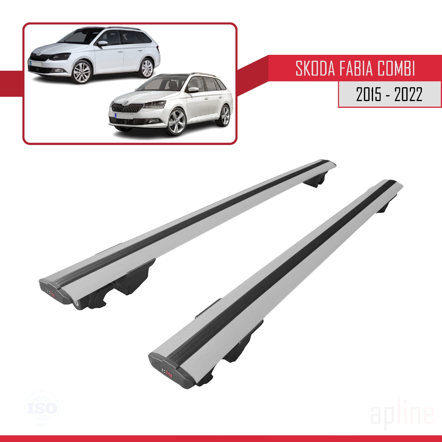 Compatible avec Skoda Fabia 3 (NJ) Break 2015-2022 HOOK Model Barres de Toit Railing Porte-Bagages de Voiture Gris Aluminium 2 Barres