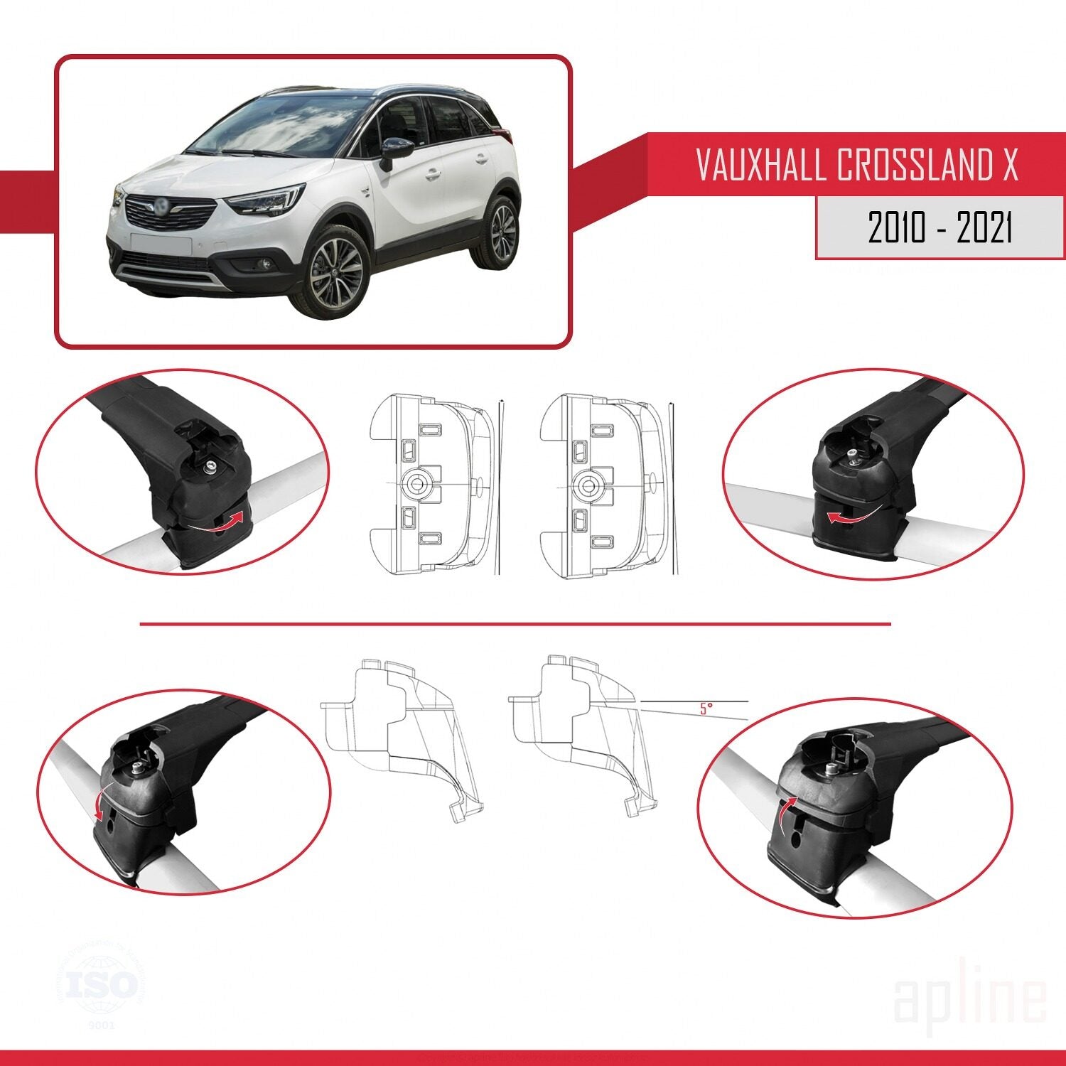 Compatible avec Vauxhall Crossland X 2017-2020 ACE-2 Barres de Toit Railing Porte-Bagages de Voiture Noir Aluminium 2 Barres