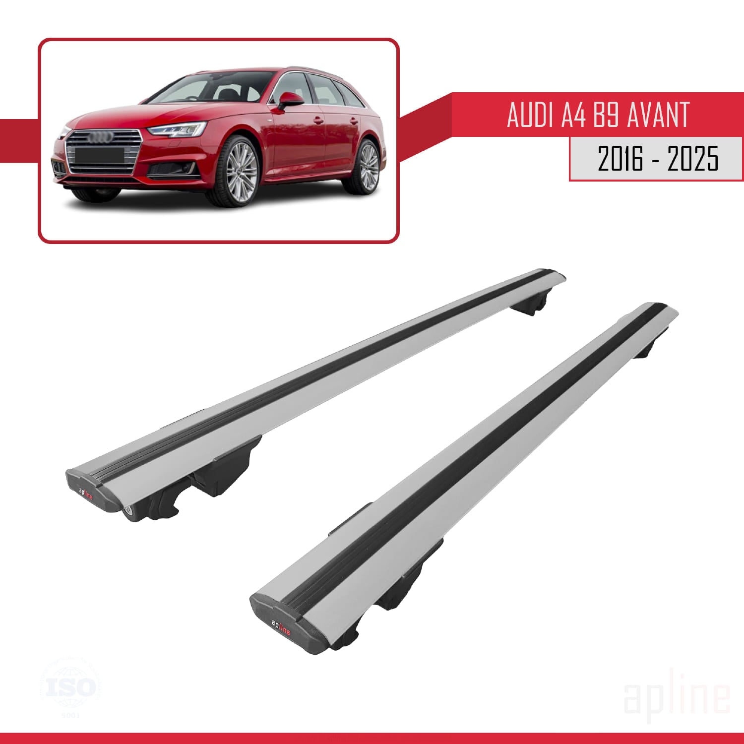 Compatible avec A4 (B9) Avant 2016-2025 HOOK Model Barres de Toit Railing Porte-Bagages de Voiture Gris Aluminium 2 Barres