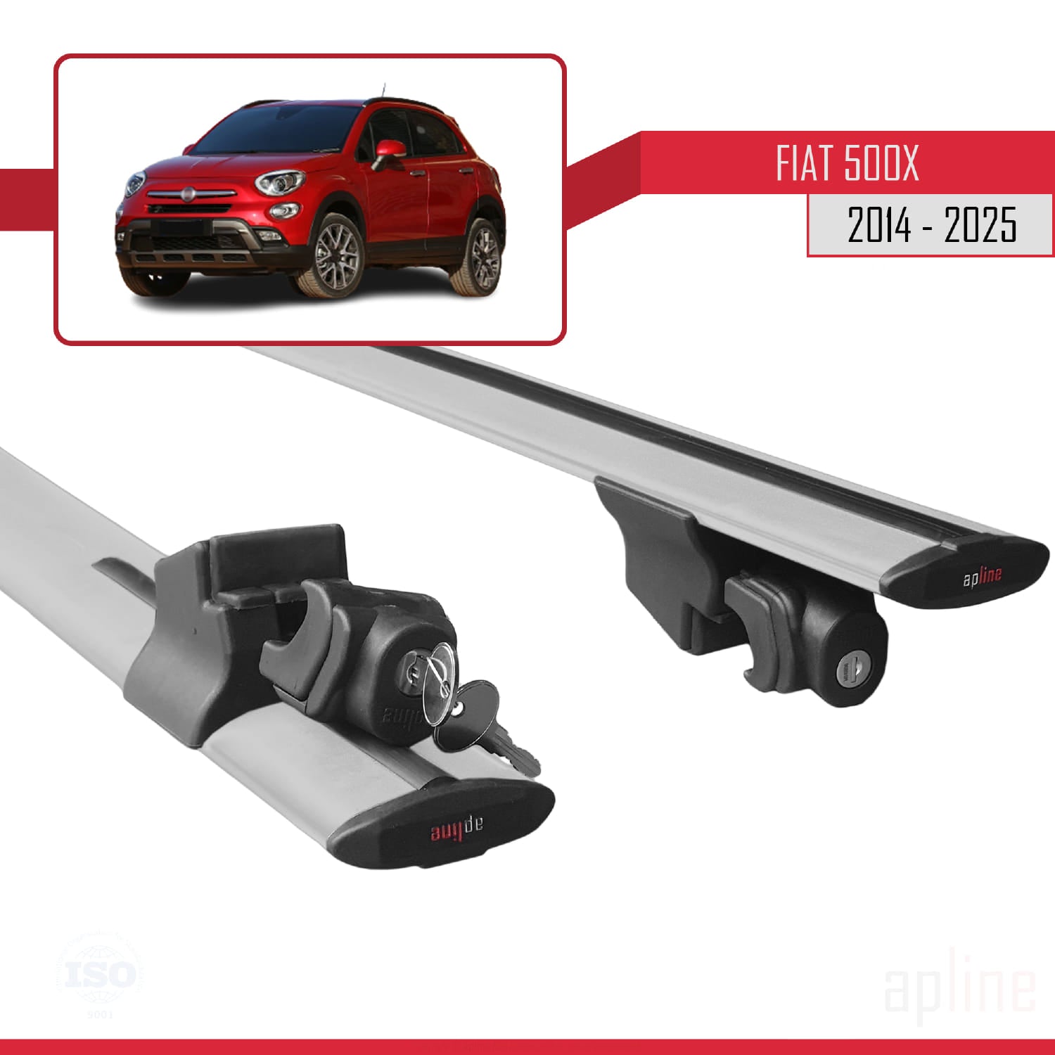 Compatible avec Fiat 500X 2014-2025 HOOK Model Barres de Toit Railing Porte-Bagages de Voiture Gris Aluminium 2 Barres