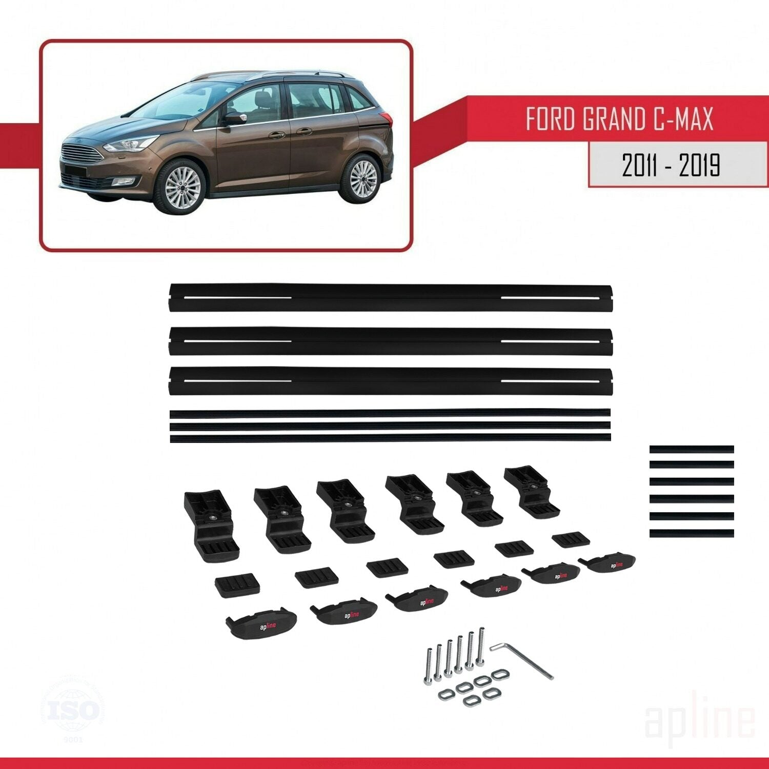 Compatible avec Ford Grand C-Max (C344) 2011-2019 BASIC Model Barres de Toit Railing Porte-Bagages de Voiture Noir Aluminium 3 Barres