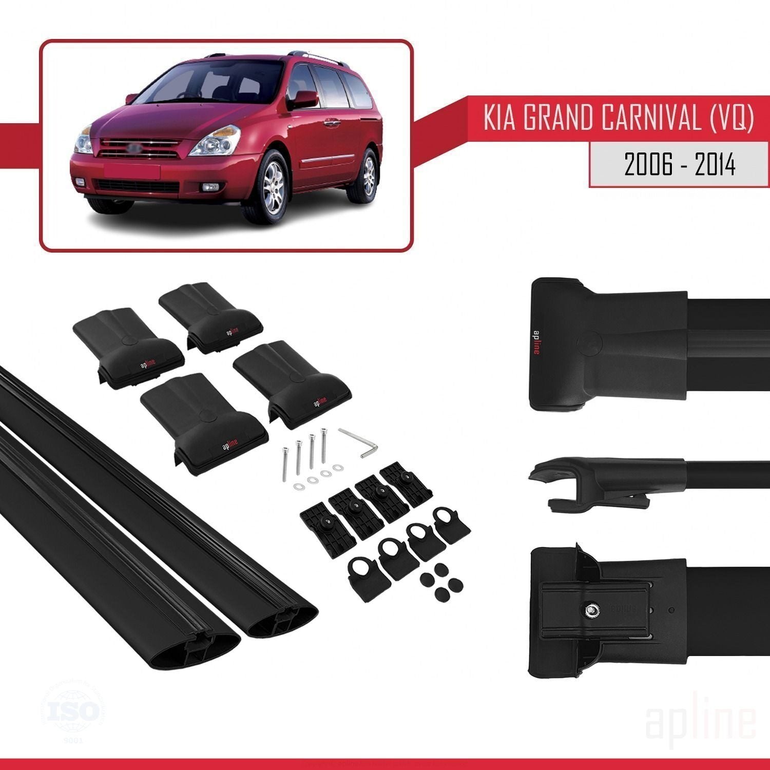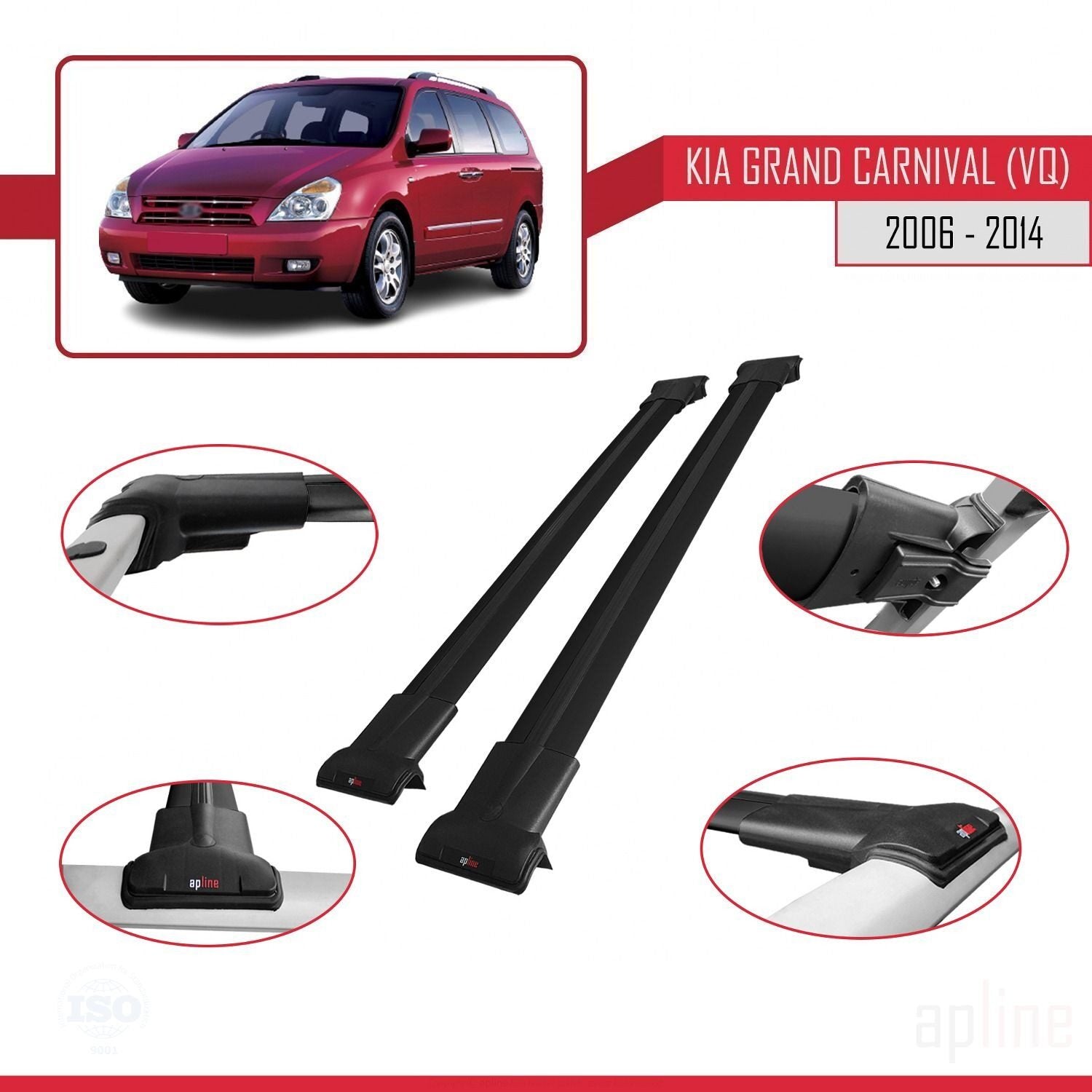 Compatible avec Kia Grand Carnival 2 (VQ) 2006-2014 FLY Model Barres de Toit Railing Porte-Bagages de Voiture Noir Aluminium 2 Barres