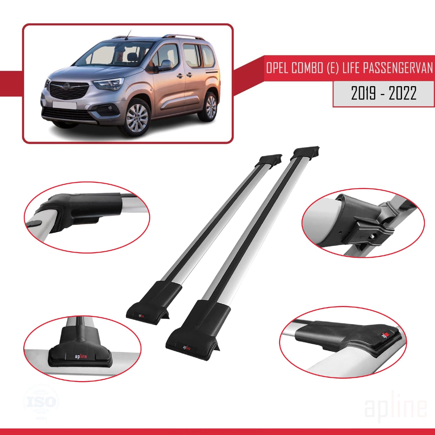Compatible avec Opel Combo E Life 2019-2022 FLY Model Barres de Toit Railing Porte-Bagages de Voiture Gris Aluminium 2 Barres