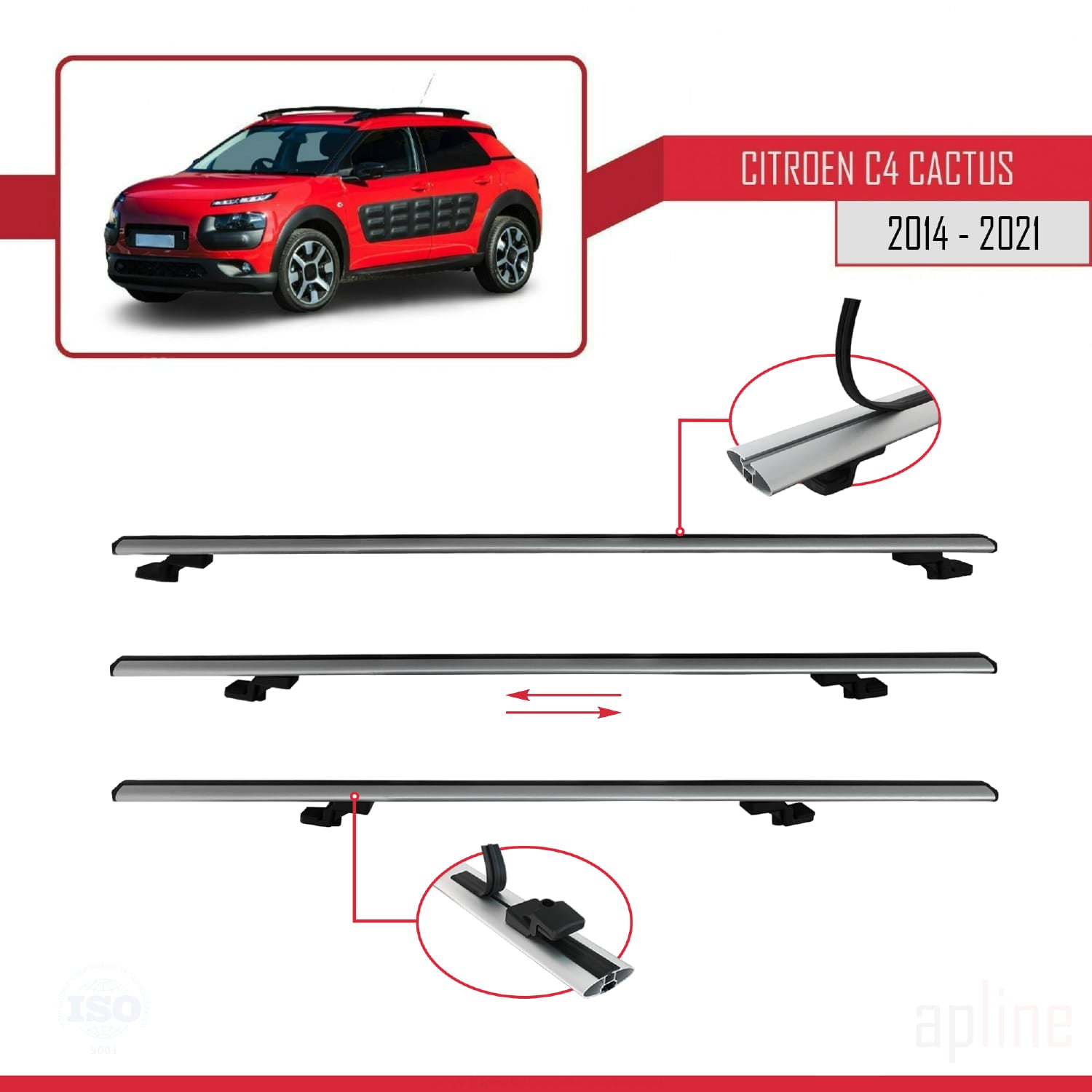 Compatibile con Citroen C4 Cactus 2014-2021 BASIC Model Barre Tetto Portapacchi Auto Barre Portatutto Grigo Alluminio 3 Barre