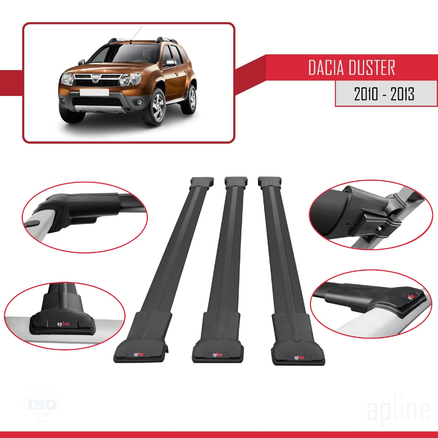 Compatibile con Dacia Duster (HS) Pre-Facelift 2010-2013 FLY Model Barre Tetto Portapacchi Auto Barre Portatutto Nero Alluminio 3 Barre