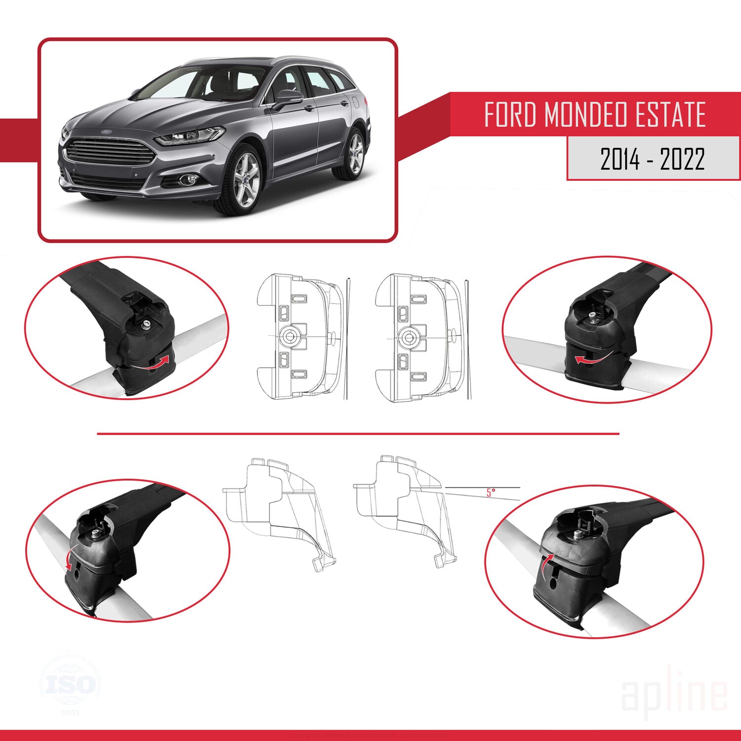 Compatibile con Ford Mondeo 4 (CD391) 2014-2022 Barre portatutto ACE-2 in alluminio nero, 2 barre