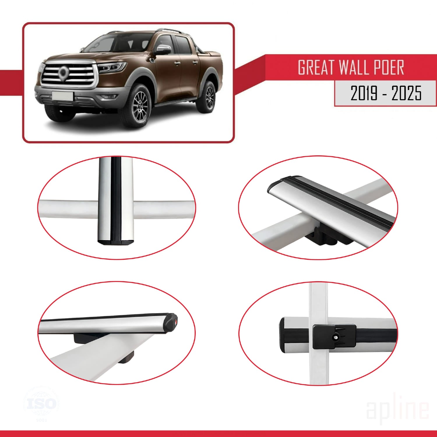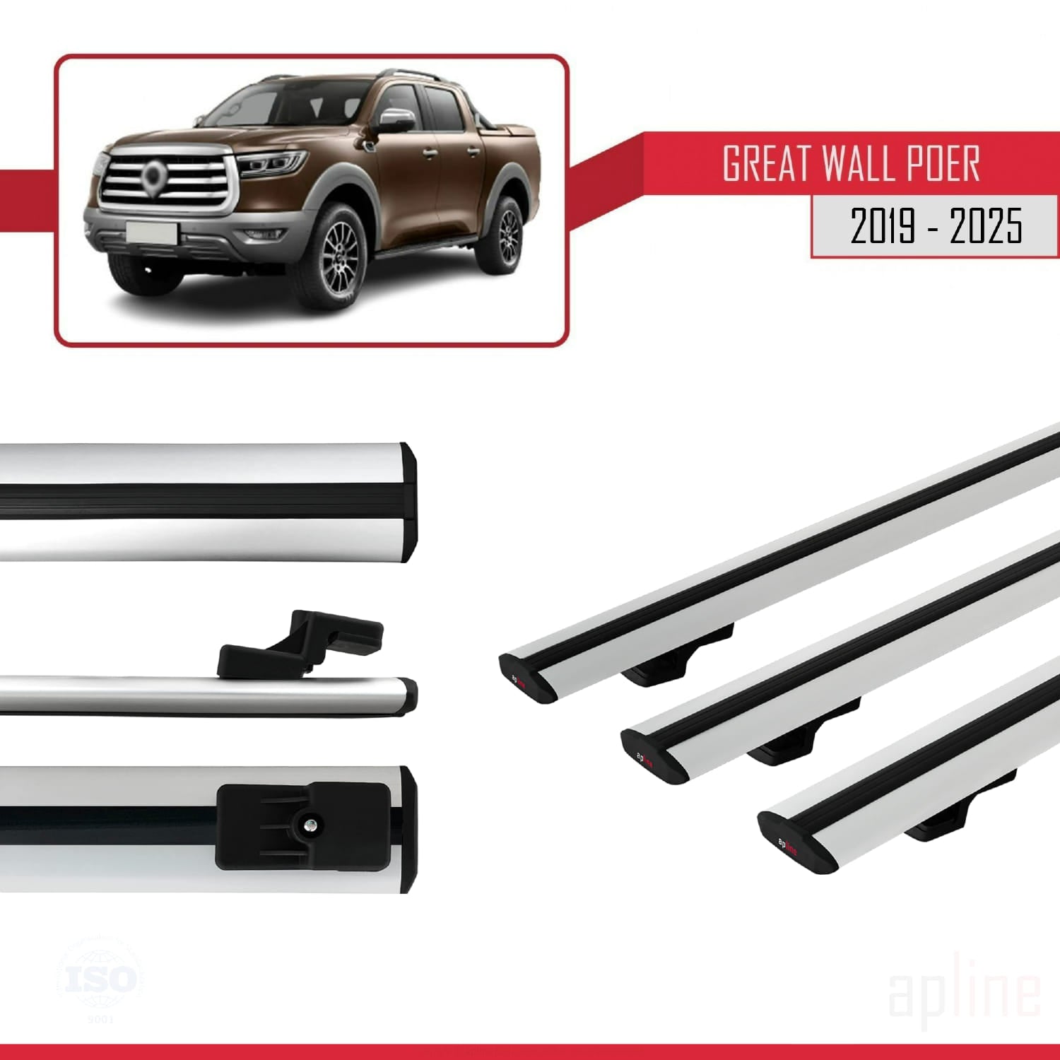 Compatibile con Great Wall Poer 2019-2025 modello BASIC Barre portatutto per auto Portapacchi in alluminio grigio 3 barre