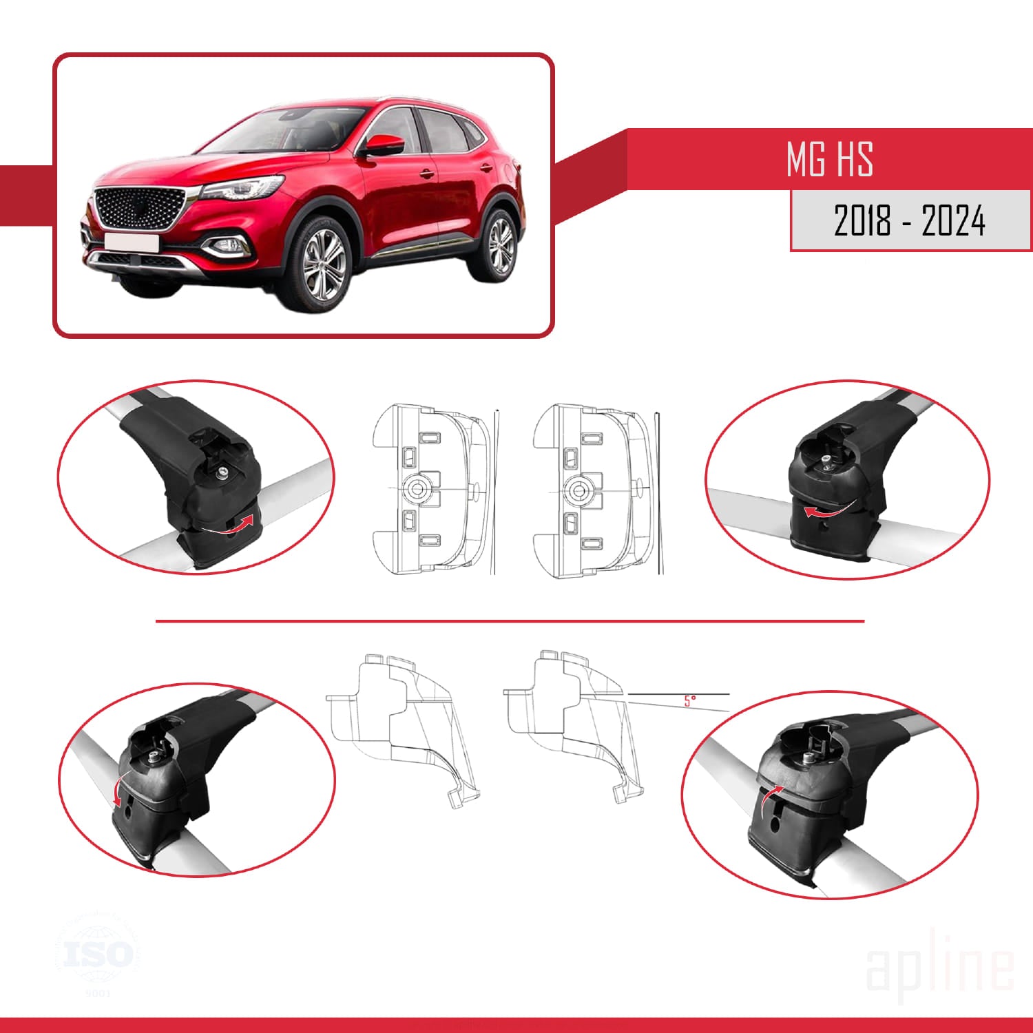 Ce produit convient aux modèles qui ne présentent pas d'espace entre le toit du véhicule et la barre de toit.
