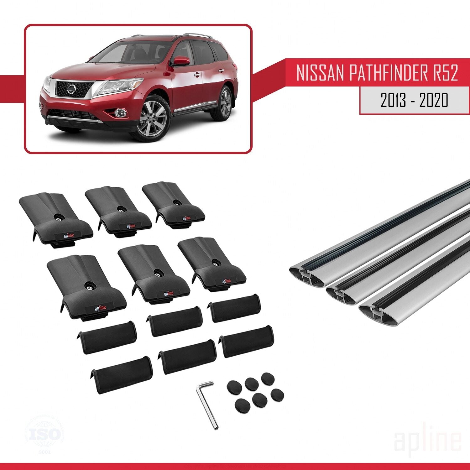 Compatibile con Nissan Pathfinder 4 (R52) 2013-2020 FLY Model Barre Tetto Portapacchi Auto Barre Portatutto Grigo Alluminio 3 Barre